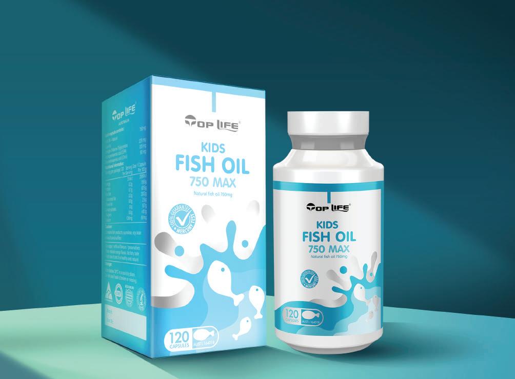 Top Life® Kids Fish Oil 750 Max contains natural fish oil 750mg helps support brain/central nervous system and cognitive development , while also supporting healthy eye function, heart and blood vessel health, and maintaining brain function.