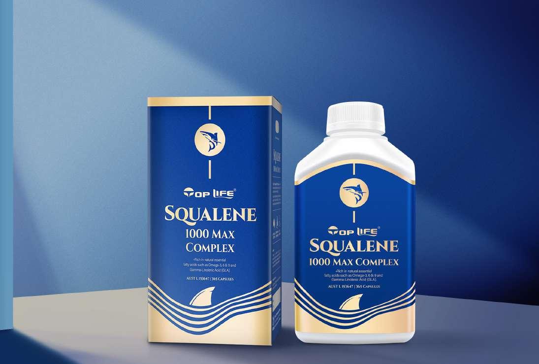 TopLife® Squalene 1000 Max Complex contains squalene, natural fish oil, cod liver oil, shark liver oil, evening primrose oil, and flaxseed oil. It is rich in natural essential fatty acids