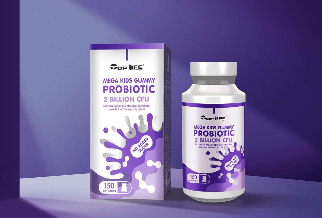 Top Life® Mega Kids Gummy Probiotic contains the unique probiotic strain Bacillus coagulans that can survive extreme conditions to ensure 2 billion CFU probiotics per serving pass the stomach & reach your intestines, where they are required. Probiotics help to make sure that your children's intestinal tract stays healthy by maintaining a balanced level of good bacteria in the intestines. Probiotic may play a vital role in supporting a healthy digestive system & good immunity. And the gummy is a fun treat in delicious grape taste!