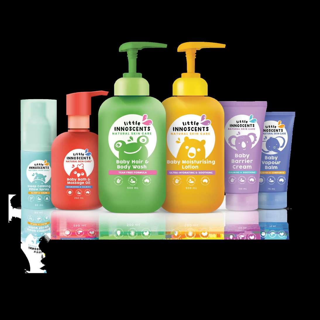 The Little Innoscents range offers a curated selection of multipurpose products to meet all your baby’s skincare needs. All of our products are made with the highest quality ingredients, and are free from hidden nasty, toxic and harsh chemicals. Made in Australia with natural ingredients, our formulas are infused with botanical and herbal extracts to help gently nourish and soothe baby’s skin.