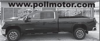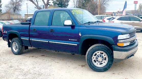 PRIME RATE MOTORS 307-674-6677 2305 Coffeen, Sheridan primeratemotors.com Call Frank at (307)-763-9600 to schedule your free bid. Superior Siding is locally owned and operated and is available for all your siding and gutter needs. We specialize in: • New construction • Residing • Seamless siding • Lp smart side • Custom trim • Both 5 & 6 inch gutters 203 4X4S MR. R’S AUTO SALVAGE Save $$$ on repairs, major or minor. We buy wrecks. Call 800-834-8307. (TS) POLL MOTOR 307-655-5542 1812 Coffeen Avenue, Sheridan pollmotor.com 2022 FORD F-150 LARIAT Sport Pkg, FX4, Heated/Cooled Seats, 3K miles, 4WD, 3.5L. $68,995 2021 CHEVY SILVERADO 1500 RST! Duramax Z-71, Tow Pkg, Buckets, 13K Miles, 4WD $52,995 POLL MOTOR 307-655-5542 1812 Coffeen Avenue, Sheridan pollmotor.com POLL MOTOR 307-655-5542 1812 Coffeen Avenue, Sheridan pollmotor.com 2023 CHEVROLET 3500 HD HIGH COUNTRY D uramax, 5th wheel prep, 501 Miles, 4WD, 6.6L. $91,995
