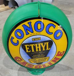 Bently Co. Sign; Class of ‘36 Sign; Auto Parts Sign; Conoco Strip Sign; Hwy Signs; Kennedy Fire Extinguisher; Large Assortment of Vintage Oil & Gas Cans; 307 Locker; Early Wood Stop Sign; Fireplace Sign; Early Brass Gas Nozzles; Brass Blow Torches; Large Assortment of Dicast Texaco Models & Toys; Conoco Gas Globe;