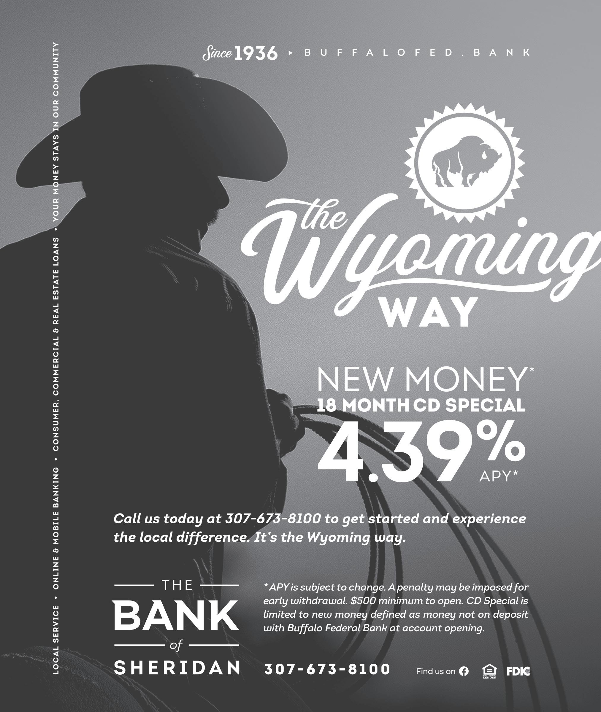 MARKETING MAIL ECRWSS U.S. POSTAGE PAID SHERIDAN, WY PERMIT #339 This Week’s Inserts T T www.SheridanMedia.com Volume 49 Number 1 • January 31, 2023 303 S. Main, Ste. 201 • Sheridan, WY 82801 • (307) 674-4312 www.SheridanWyoming.com CounTry BounTy • Albertsons • • Hardees • CounTry BounTy CounTry BounTy O wned by the Customers We Serve! 307-674-7463 sheridancoop.com 1450 Coffeen 55 N. M ain Sheridan 307-675-6055 www.hammerchevy.com * www.hamnerchevy.com * www.hammerchevy. com www.hammerchevy.com * www.hammerchevy.com * www.hammerchevy.com www.hammerchevy.com * www.hammerchevy.com * www.hammerchevy.com *www.hammerchevy.com www.hammerchevy.com * www.hammerchevy.com * www.hammerchevy.com www.hammerchevy.com * www.hammerchevy.com * www.hammerchevy.com *www.hammerchevy.com www.hammerchevy.com * www.hammerchevy.com * www.hammerchevy.com www.hammerchevy.com * www.hammerchevy.com * www.hammerchevy.com *www.hammerchevy.com 674-6419 PARTS DEPARTMENT: 672-5511 ACROSS FROM CENTENNIAL THEATRE Open Saturdays until 4 PM www.hammerchevy.com 4WD - SPORT UTILITY - 29K MILES! www.hammerchevy.com * www.hamnerchevy.com * www.hammerchevy. com $34,395 2021 FORD BRONCO SPORT OUTER BANKS www.hammerchevy.com * www.hamnerchevy.com * www.hammerchevy. com