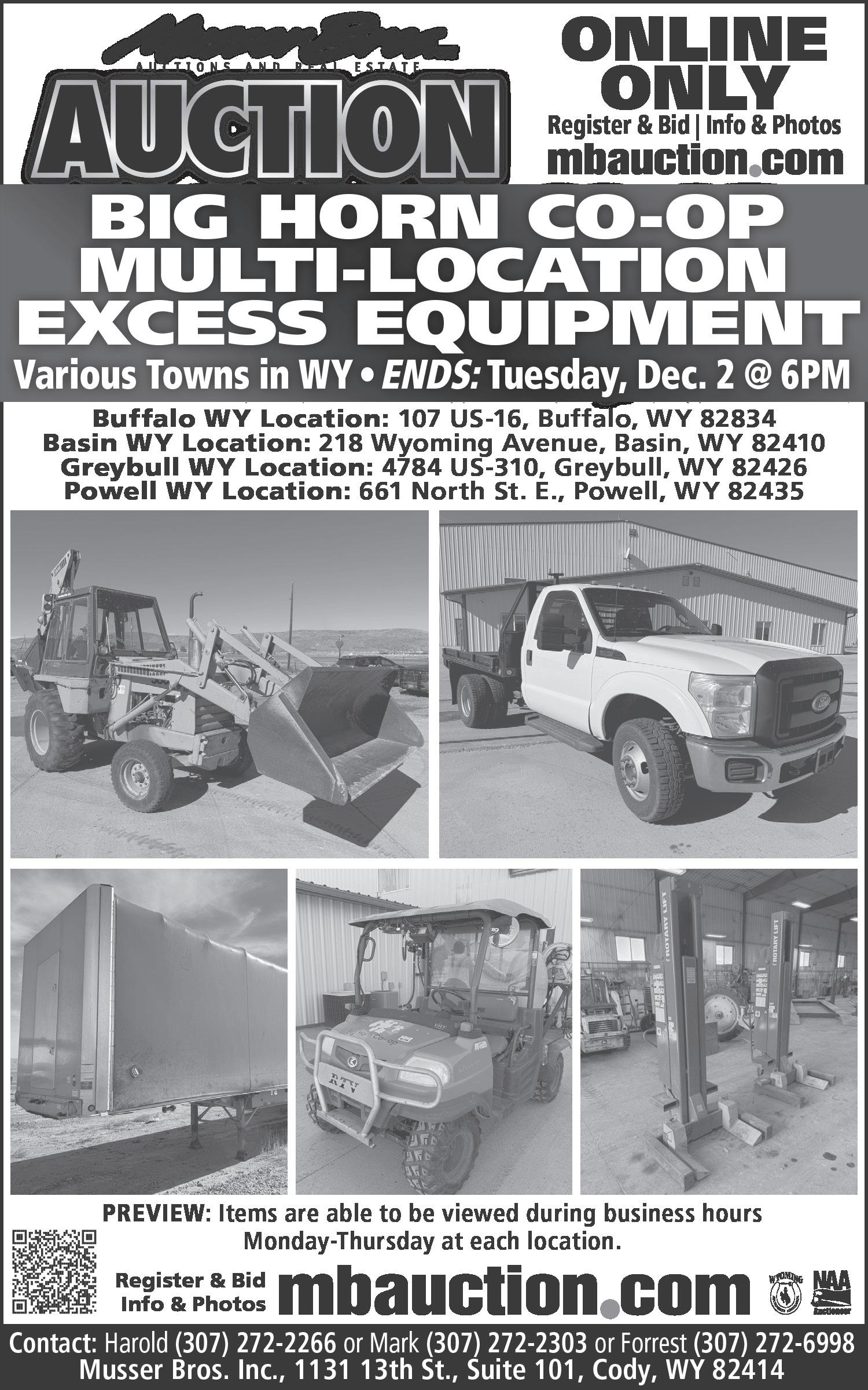 OFFER FOR SALE, AT PUBLIC AUCTION, the following vehicle to satisfy costs associated with its removal, storage, and other incidentals as provided by Wyoming law. 1984 BMW 318, VIN# WBAAK7401E8416226 Location: JB Storage Containers 1510 Industrial Drive, Sheridan, WY. 82801. Date / Time of Sale: November 22, 2025 at 9:00 AM. Vehicle sold “As Is”.(42)