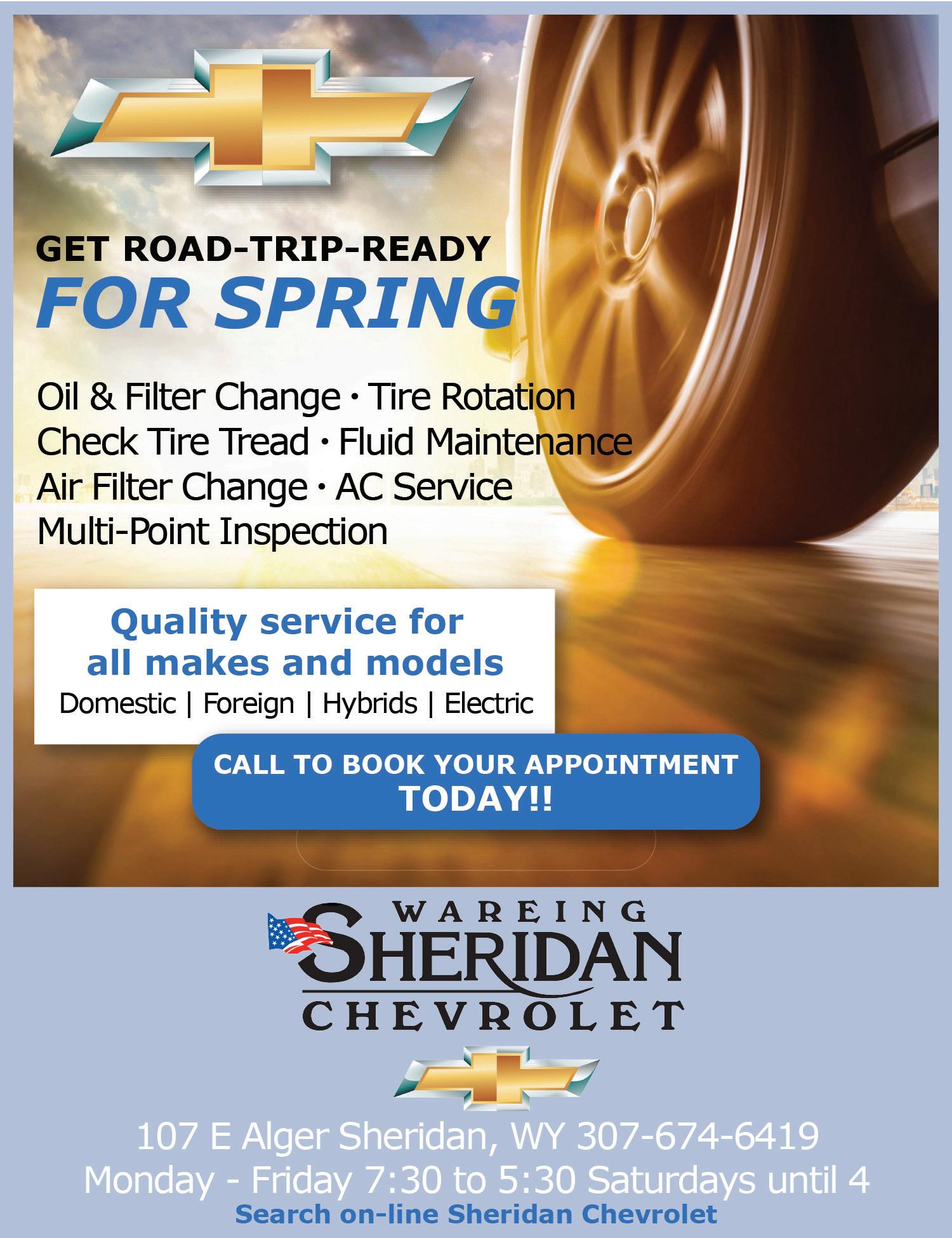 We accept most major credit cards over the phone! Country Bounty, April 18, 2023, page 6 Read the Country Bounty online at www.countrybounty.com Trusted Service & Repair cars trucks vans hybrids foreign domestic $25 Off Tune-Up Service Free Estimates All Work Guranteed May not be combined with any other offers. Not valid on previous repairs. See advisor for details. Expires 5/31/2023 724 Main Street, Dayton 307-655-2335 dayton-deals.com CONQUER THE MOUNTAIN!! In this 2020 Jeep Gladiator Mojave, 3.6L/Auto, Htd Leather, Navigation, Removeable Hard Top, Winch, 41K Miles, 4WD, WARRANTY! $47,995. LET’S DEAL! PRIME RATE MOTORS 307-674-6677 2305 Coffeen, Sheridan primeratemotors.com FUEL EFFICIENT DIESEL!! 2021 GMC K-1500 Denali, 3.0L Diesel/Auto, Htd/Cooled Leather, Navigation, Sunroof, 22K Miles, 4WD, WARRANTY! $59,995. LET’S DEAL! PRIME RATE MOTORS 307-674-6677 2305 Coffeen, Sheridan primeratemotors.com JUST IN! AFFORDABLE WORK TRUCK!! 2019 Chevy K2500 Crew Cab Longbox, 6.0L/Auto, Power Equipment, Vinyl Floor, Tow Pkg, 53K Miles, 4WD! $39,995. LET’S DEAL! PRIME RATE MOTORS 307-674-6677 2305 Coffeen, Sheridan primeratemotors.com 3 UNITS AVAILABLE! 2020 Ford F-350 Crew Cab Longbox XL, 6.2L/Auto, Power Equipment, FX4 Off Road Pkg, Vinyl Floor, 39K Miles, 4WD, WARRANTY! $51,995. LET’S DEAL! PRIME RATE MOTORS 307-674-6677 2305 Coffeen, Sheridan primeratemotors.com