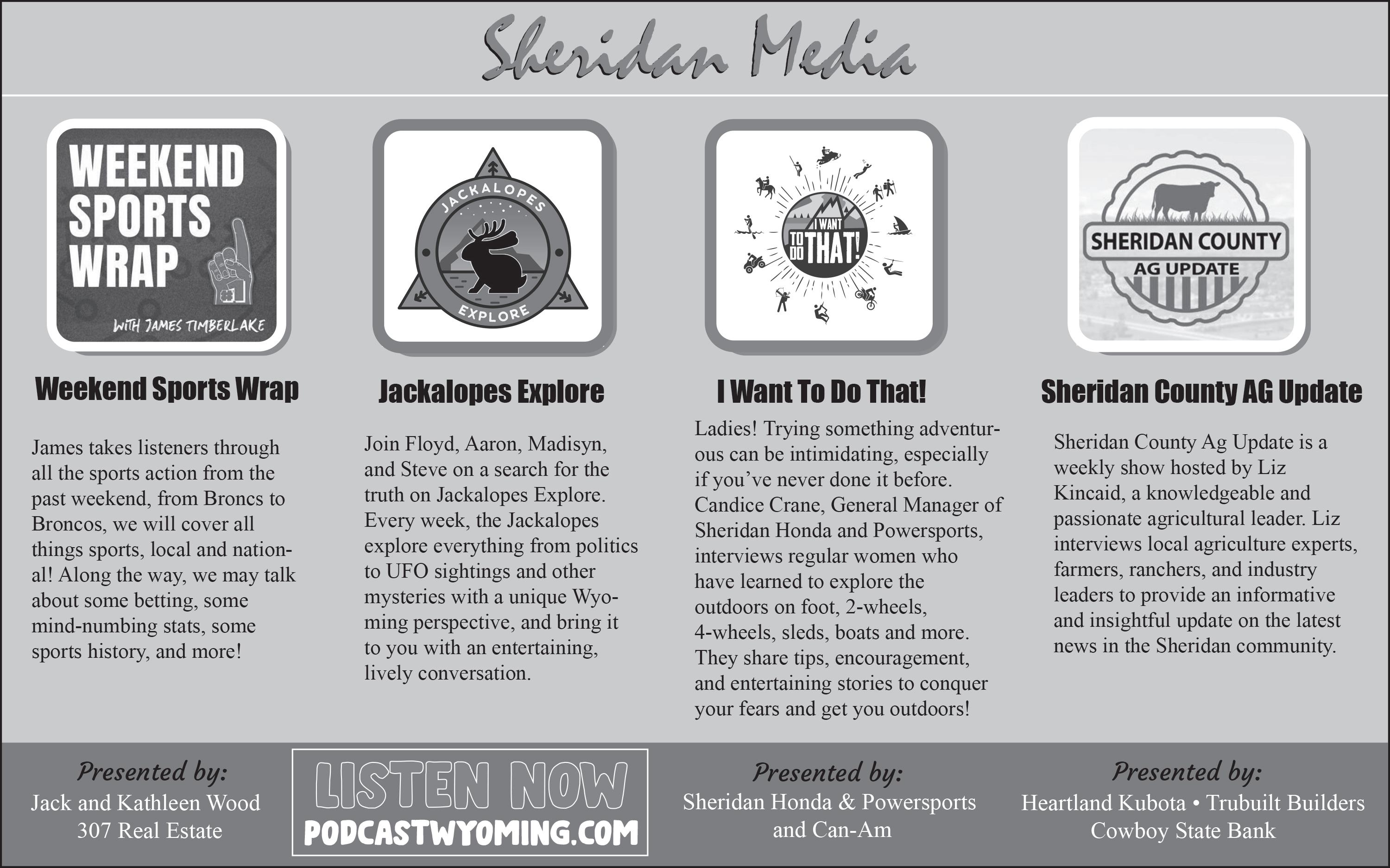 MARKETING MAIL ECRWSS U.S. POSTAGE PAID SHERIDAN, WY PERMIT #339 This Week’s Inserts The The www.SheridanMedia.com Volume 49 Number 27 • August 1, 2023 303 S. Main, Ste. 201 • Sheridan, WY 82801 • (307) 674-4312 www.SheridanWyoming.com • Albertsons • • Sportsmans Warehouse • O wned by the Customers We Serve! 307-674-7463 sheridancoop.com 1450 Coffeen CounTry BounTy CounTry BounTy CounTry BounTy Call Today! 307-752-3779 Sheridan Realty Associates NEW LISTING! 1427 TAYLOR AVENUE Immaculate ranch featuring 4 bedroom, 1 bath, covered patio, alley access to double car garage. Close to hospital, walking paths, schools.