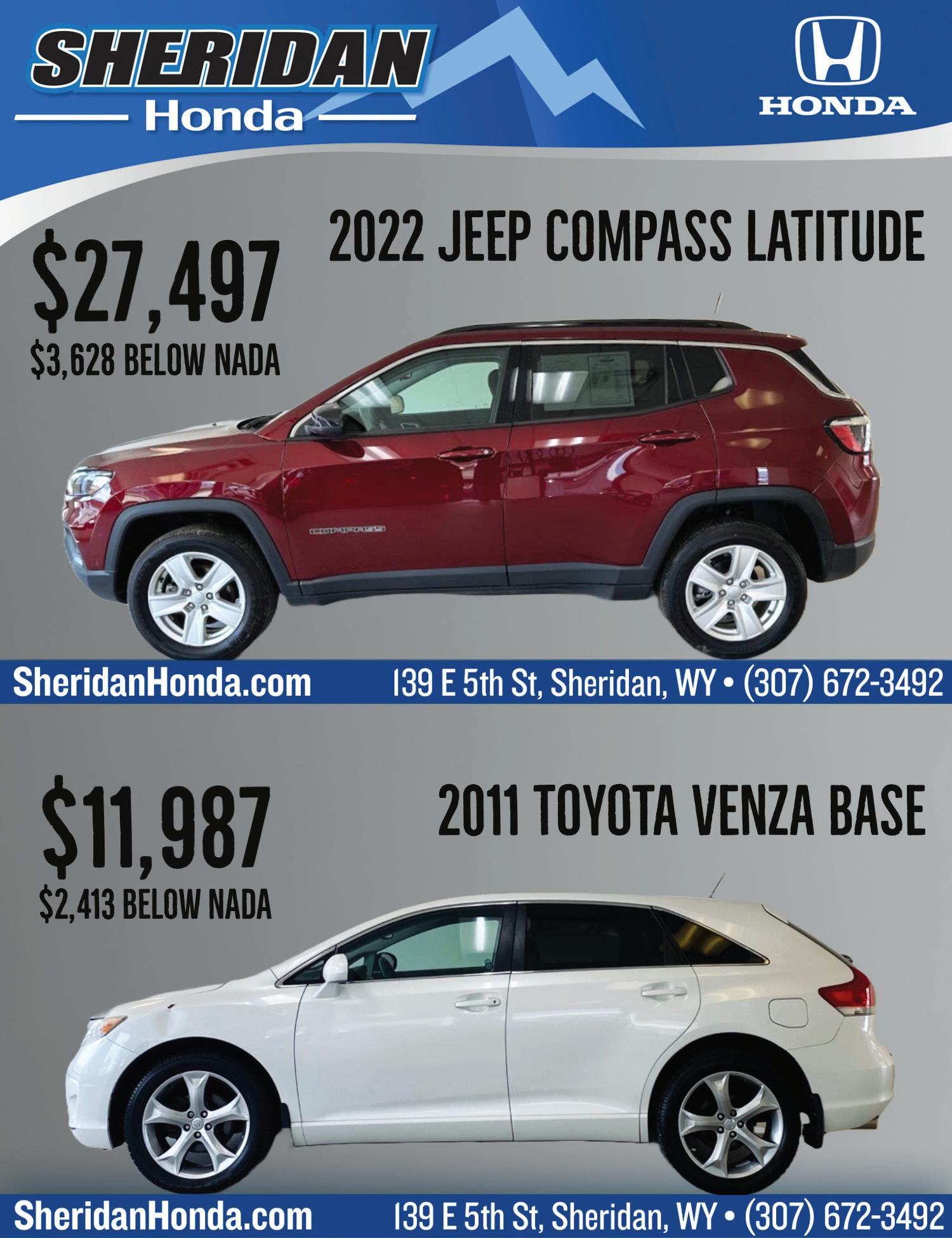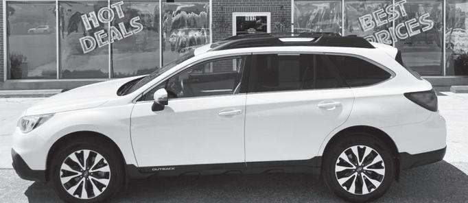 Country Bounty, August 1, 2023, page 4 AFFORDABLEAUTOSWY.COM • AFFORDABLEAUTOSWY.COM • AFFORDABLEAUTOSWY.COM • AFFORDABLEAUTOSWY.COM • AFFORDABLEAUTOSWY.COM • AFFORDABLEAUTOSWY.COM • AFFORDABLEAUTOSWY.COM • AFFORDABLEAUTOSWY.COM • AFFORDABLEAUTOSWY.COM • AFFORDABLEAUTOSWY.COM • • AFFORDABLEAUTOSWY.COM • AFFORDABLEAUTOSWY.COM • AFFORDABLEAUTOSWY.COM • AFFORDABLEAUTOSWY.COM • AFFORDABLEAUTOSWY.COM • Online @ AFFORDABLEAUTOSWY.COM Wholesale to the public means Newer cars for less. Never any added charges or fees. SO WHY PAY MORE FOR LESS? 2350 COFFEEN AVENUE, SHERIDAN Call 673-8277 or Peter’s cell 752-6154! Hours: M-F 9:00-5:00 and Saturday 10:00-2:00 AFF RDABLE AUT S 15 `21 TOYOTA COROLLA Fun, Sporty Savings for Decades! $18,000 Fuel Miser! `17 NISSAN MURANO AWD Totally Loaded 3.5 V6, Really Sharp! $16,000 2-Owner! `18 HONDA CIVIC EX 64K Miles, Fun, Dependable Ride! $15,000 30-40 MPG! `15 FORD EDGE PLATINUM AWD Loaded up, 3.5 V6, Always Maintained! $14,500 Awesome! `15 JEEP GRAND CHEROKEE 4X4 Ready for Fun Winter Weather! $14,000 2-Owner! `17 FORD TRANSIT CARGO Nice, Clean, Set up with Shelves! $13,000 1-Owner! `19 CHEVY TRAX AWD Save for Years, Economical SUV! $11,000 61K Miles! `13 HONDA ACCORD SPORT Clean, Loaded, & So Much Fun! $10,000 2-Owner! `15 JEEP PATRIOT SPORT Fun, Efficient 6-Speed, Sweet! $9,000 Let’s Deal! `06 SUBARU BAJA SPORT 4X4 Fun, Practical, Efficient Pickup! $4,500 So Cool! `15 SUBARU LEGACY AWD Fun, Go Anywhere, All-Wheel-Drive! $8,000 1-Owner! `12 HONDA PILOT 4WD Sporty, Dependable, Efficient 3-Rows! $8,000 17-24 MPG! `11 TOYOTA COROLLA 88K Miles, Fun, Local Trade-in! $7,000 35 MPG! `05 CHEVY Z-71 SUBURBAN 4X4 Your Family will Love to Go Anywhere! $6,000 Off-Road! `12 SUBARU OUTBACK AWD V6, Limited, Leather, Loaded, Let’s Go! $5,500 1-Owner! `05 HONDA CRV AWD Nice, Clean, Cold Air, Let’s Go! $4,500 Sunroof! `07 HONDA ODYSSEY EX-L 3 to Choose From, Ready Today! $4,000 `07 HYUNDAI ENTOURAGE GLS Nice, Maintained, Fun Family Ride! $3,500 2-Owner! `08 PONTIAC GRAND PRIX 3800 V6, Fun, Sporty, Local Trade! $3,000 `11 HYUNDAI ELANTRA Always Lots of Low Priced Trade-ins! $2,500 Efficient! 1-Owner! Roomy! `17 CHEVY MALIBU LT 53K, Ready For the Road! $12,500 30-36 MPG! `16 HONDA CIVIC EX Fun, Sporty, Maintained Ride! $12,000 Sunroof! Gibson Family Sales Team Styles might change, and people always change... ... but Old Fashioned Values of Honesty & Integrity Never Go Out of Style! `18 CHEVY SUBURBAN 4X4 New Tires, Ready for the Big Trip! $12,000 1-Owner! `10 NISSAN ARMADA 4X4 Nice, Clean, Loaded,Titanium! $10,500 1-Owner! `07 TOYOTA FJ CRUISER 4X4 Great Shape,You’ll Love this FJ! $9,500 2-Owner! `15 CHEVY SILVERADO 2500 HD Work or Play Today, with Tool Box! $12,000 1-Owner!