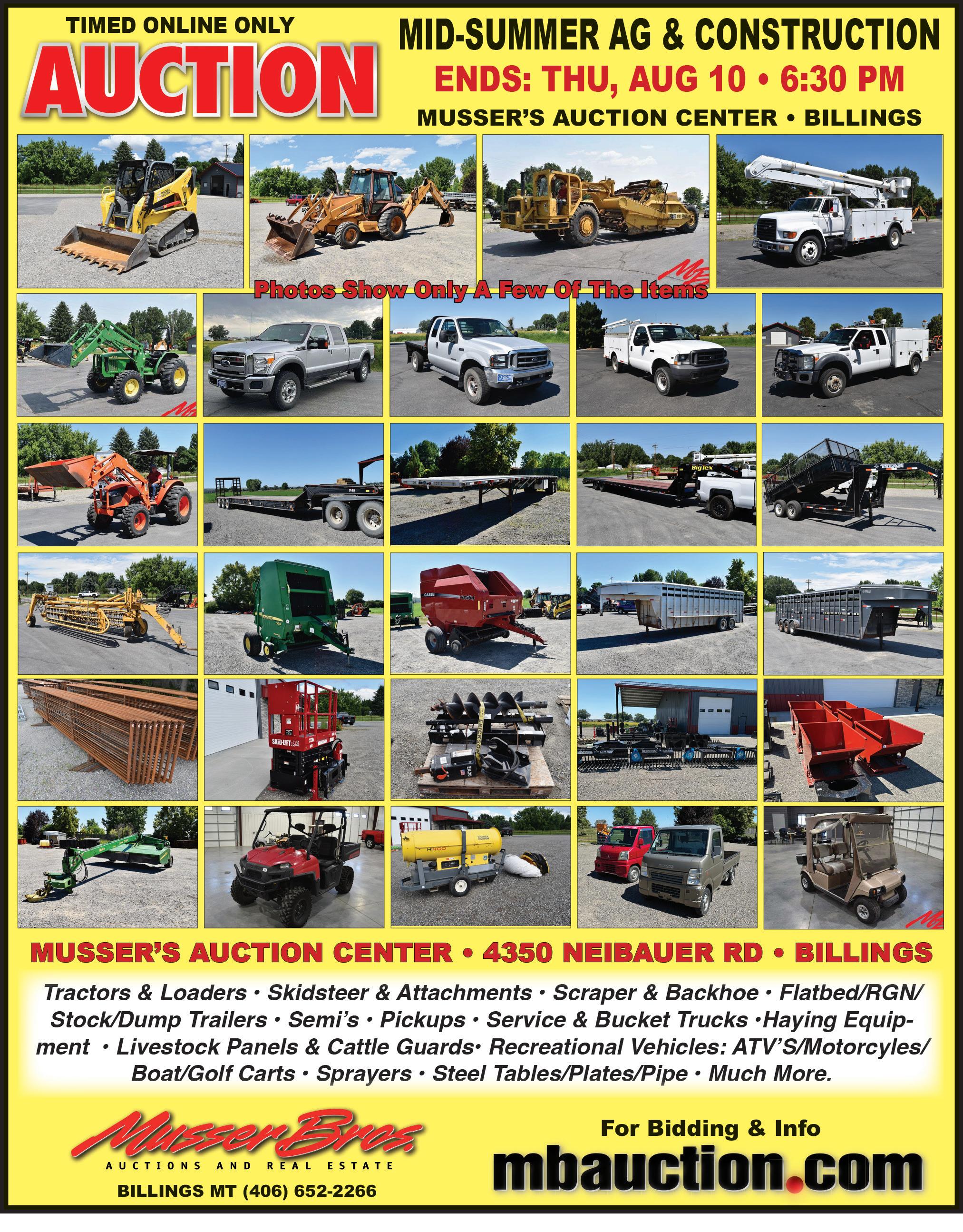 Sponsors: C&K Equipment, First Northern Bank, Farmer’s Co-op, M and K Rental, Cherni and McDowell Piano Repair, Skyline Implement, Heartland Kubota, Big Horn Tire (Buffalo), Powder River Power, Fastenal, MCM General Contractors Inc., Eco Blast of the Big Horns