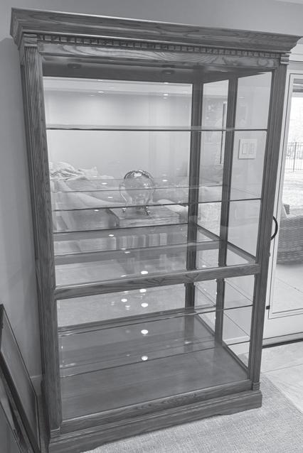 HOWARD MILLER 5 GLASS SHELF . Mirrored back panel front door swings to the left and to the right lockable door. 2 lights in top. 80” tall. 48” wide. 20” deep. Asking $1500. (307)751-2599. (31)bg