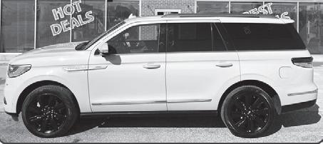 Country Bounty, August 22, 2023, page 8 BACK TO SCHOOL SPECIAL $10 All the Clothing You Want! 802 Lincoln Drive, Sheridan • Open 10-4 Monday-Thursday POLL MOTOR 307-655-5542 1812 Coffeen Avenue, Sheridan pollmotor.com 2022 LINCOLN NAVIGATOR RESERVE, Power Boards, Buckets 2nd Row, 7K Miles, 4WD $90,995 POLL MOTOR 307-655-5542 1812 Coffeen Avenue, Sheridan pollmotor.com 2023 TOYOTA SEQUOIA CAPSTONE, Panoroof, Buckets 2nd Row, Power Boards, 7K Miles, 4WD, $89,995 POLL MOTOR 307-655-5542 1812 Coffeen Avenue, Sheridan pollmotor.com 2018 JEEP WRANGLER JK UNLIMITED RUBICON, Leather, Tow Pkg, Remote Start, Loaded, 4WD, 78K Miles, $37,995 POLL MOTOR 307-655-5542 1812 Coffeen Avenue, Sheridan pollmotor.com 2020 HONDA PILOT TOURING 7-P, Buckets 2nd, DVD, Sunroof, 43K Miles, $36,995 ONLY $376.08 PER MONTH WAC!! 2015 Mercedes GLK350, 3.5L/Auto, Htd Leather, Navigation, Sunroof, Sat Radio, 64K Lower Miles, 4WD! $20,995 LET’S DEAL! PRIME RATE MOTORS 307-674-6677 2305 Coffeen, Sheridan primeratemotors.com READY FOR FAMILY ADVENTURES!! 2020 Ford Expedition Platinum, 3,5L Ecoboost/Auto, Htd/Cooling Leather, NAV, Sunroof, Tow Pkg, 4WD, 13K Miles, WARRANTY! $67,995 LET’S DEAL! PRIME RATE MOTORS 307-674-6677 2305 Coffeen, Sheridan primeratemotors.com POLL MOTOR 307-655-5542 1812 Coffeen Avenue, Sheridan pollmotor.com 2017 JEEP GRAND CHEROKEE LAREDO, One Owner, Great 4x4, New Tires, 124K Miles, $16,995
