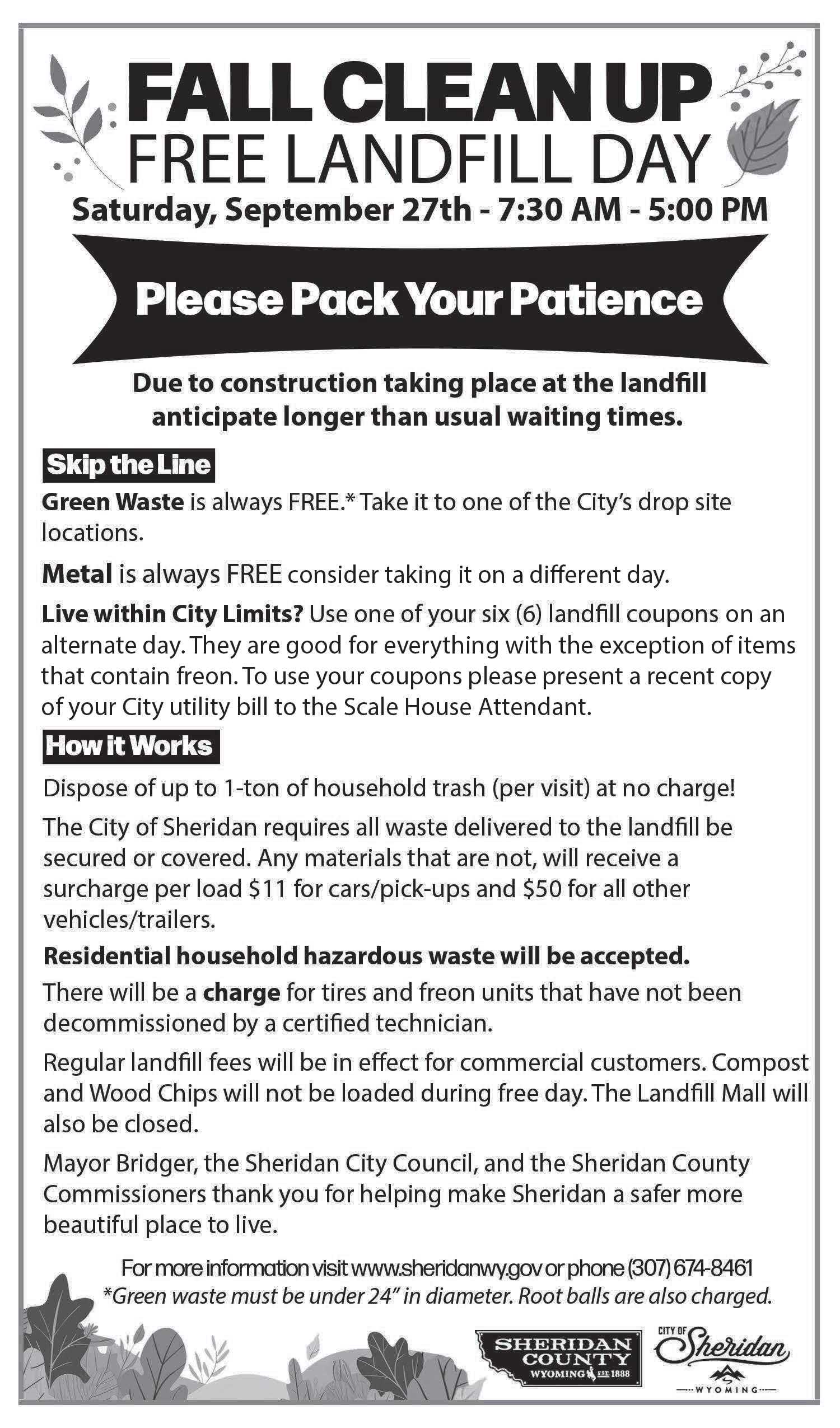 ONE OLD VETERAN’S SERVICES: Cleaning gutters in the Sheridan area. Call David to reserve a limited spot. 307-247-5279.