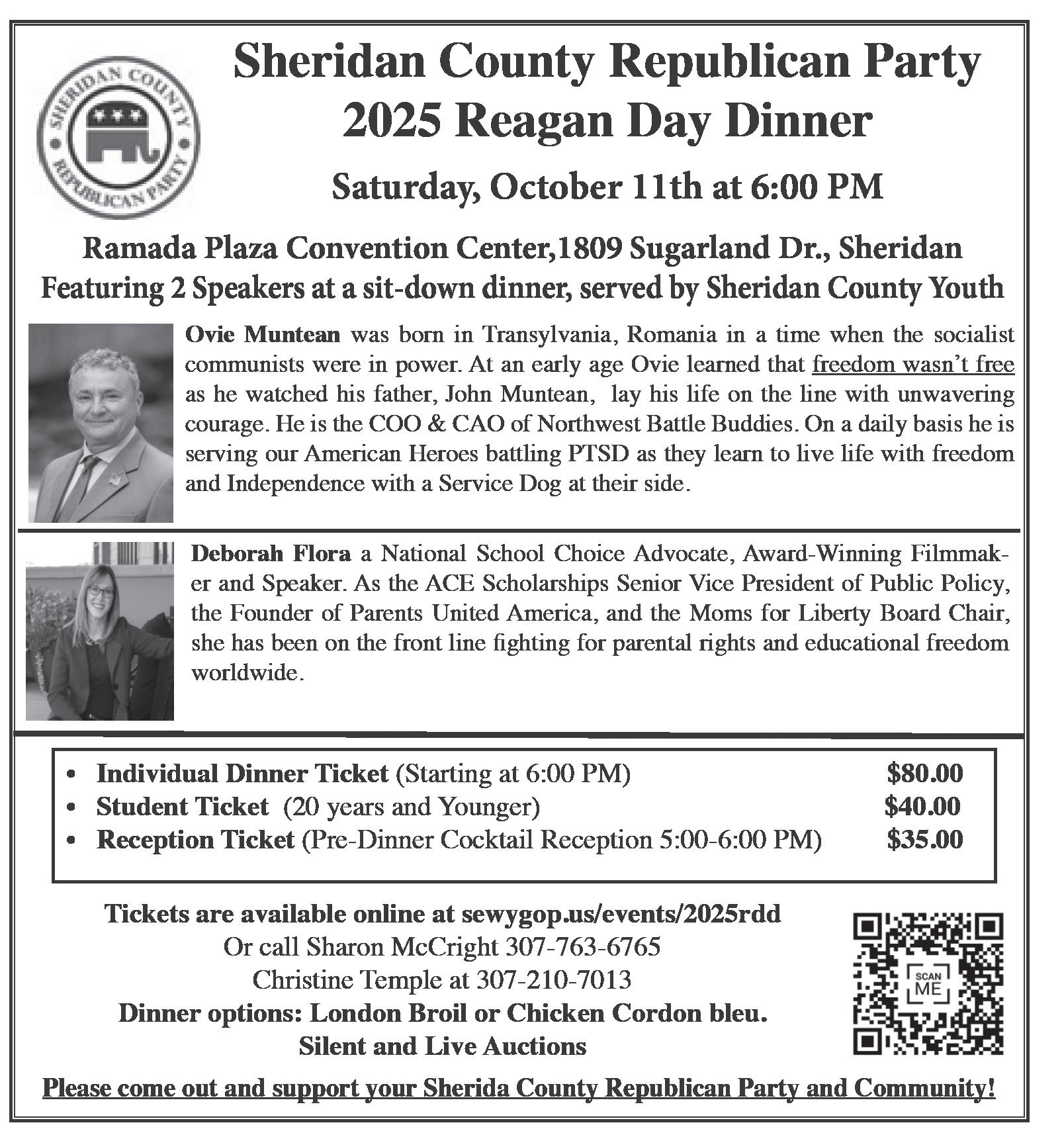 Sept. 27, 2025 • 11am - 2pm Carol Cox at 307-221-0857 or Sherry Walter at 307-620-0150. See YOU THERE!