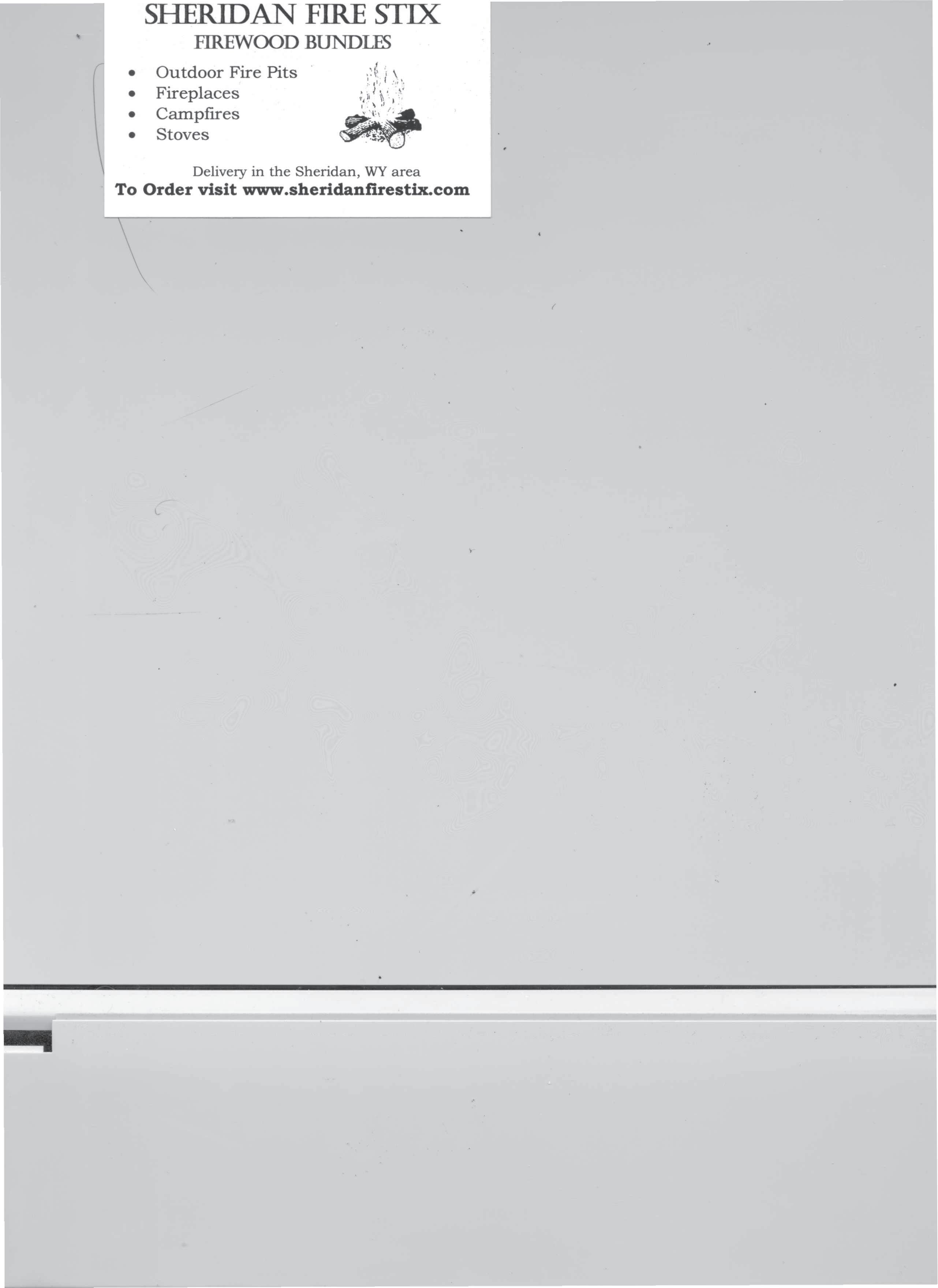 EXCAVATION Phone: 307-763-3711 1140 Dove Tail lane email: 2002 WaTsonT@gmail com sheriDan, WY 82801 EXCAVATION woodsexcavation.net 307-752-2267 Serving Sheridan, WY & Surrounding areas • Commercial & Residential Site Prep • Utility Install & Repair • Septic Install & Repair • Demolition FAMILY PRACTICE ZORUMSKE FAMILY PRACTICE 307-429-1202 409 E. 1st Street • Sheridan,