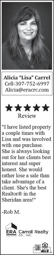 Country Bounty, December 6, 2022, page 23 THE COUNTRY BOUNTY BUSINESS & SERVICES DIRECTORY ~ PAGE 2 GENERAL CONTRACTING The Best Service Up and Down 307-673-1640 • Mon-Fri 8 am - 5 pm • 44 Fort Road GARAGE DOORS EXCAVATION • Dozer Final Grades • Shop Slab Preps • Dump Truck Hauling • Driveways • Snow Removal & So Much More!! • Street Work • Sewer & Water Tie In’s • Septic Systems • Demo • Crawl Holes /Basements EXCAVATION LICENSED & INSURED Dan Rogers, President • 307-684-2130 17 Plains Drive, Buffalo WY 82834 • www.rmerentals.com HAIR STYLIST 307-751-3062 Deadline for submission of Business Directory Listings is Wednesdays by