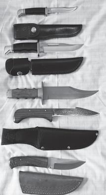 Game Calls; Assorted Hunting Decoys; Assorted Camping & Hunting Cookware Supplies; Sleeping Pads; Tents; Large Amount of Hunting Clothing including: Camo, Insulated Gear, Hunting Vest, Gators, Wool Pants; Pocket Knives; Ammo Cans; Meat Boxes; SOG Hatchets; SOG Throwing Knives; Arrows; Fixed Blade Hunting Knives Including: RH Ruana w/ Original Sheath, Large Amount of Buck Knives, Buck #109, Buck #119, Schrade & Custom Hunting Knives; Craftsman Battery Powered Tools; MTC Tile Saw; Miter Box; (2) Worm Drive Circular Saws; Wood Carving Tools; Game Bags; Bipods; Broadheads; Jerry Cans; Shooting Sticks; Assorted Gun Leather & more!