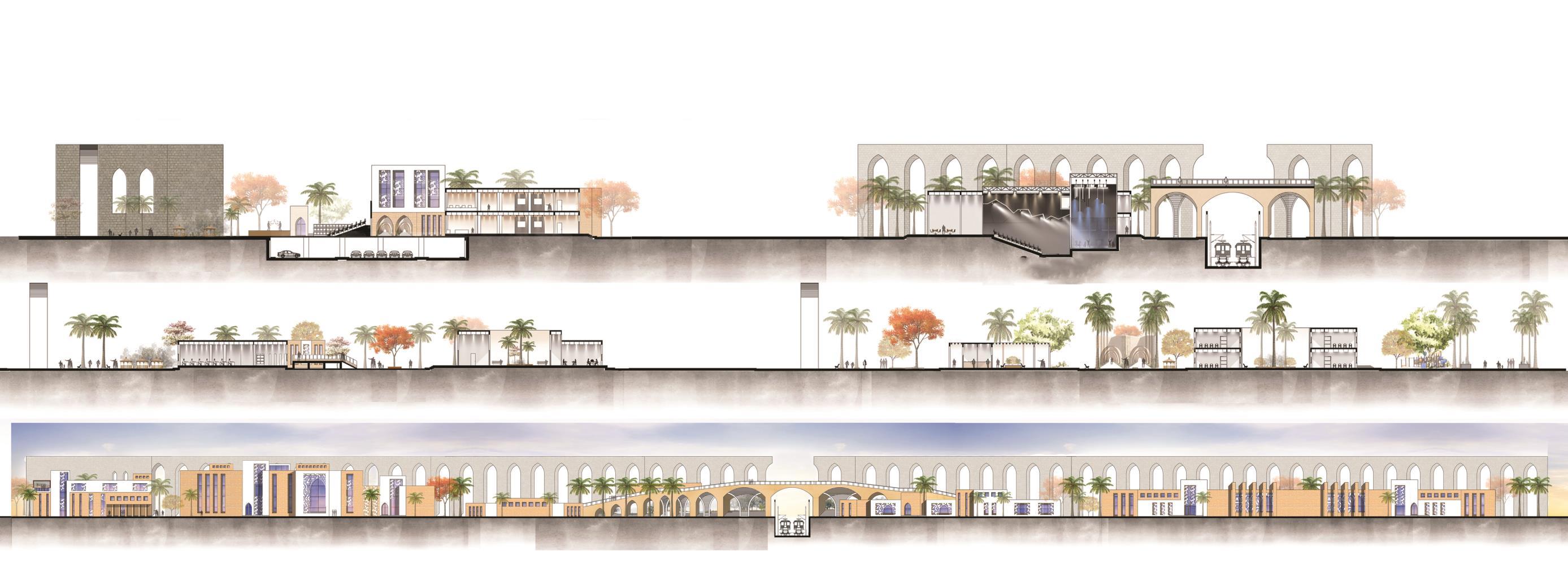 Project Sections and Elevation Presentation: Photoshop GRADUATION PROJECT(Revivalism of sour magra al-oyon zone (MagraAlOyoun Cultural Node)