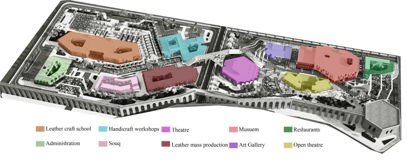 Project Brief: The project aim is to revive that hidden heritage and history and telling the story of that important building.Also the site was the center of tannery industry it has been laying in Magra El Oyoun since the Fatimid era. The government is relocating the Tannery industry; thus the project attempts to foresee the area’s urban renewal scheme. The propose focuses on how it can assist employment generation and strengthening the skills of the workers so the project will be a historical site rich with local crafts generally leather craft which will attract tourists and rise the economy.
