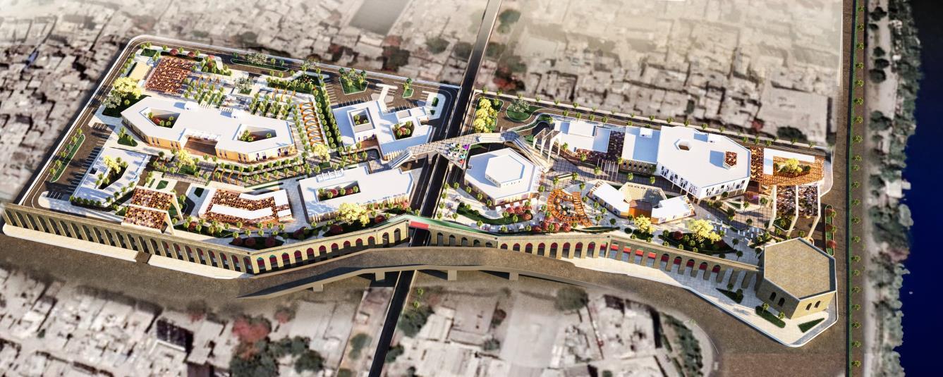 The project contain a tourist walkway with bazars and cycling lanes.Also there is abridge to make people across the metro line found in this zone to make them transfer from the cultural area to the crafts center area.