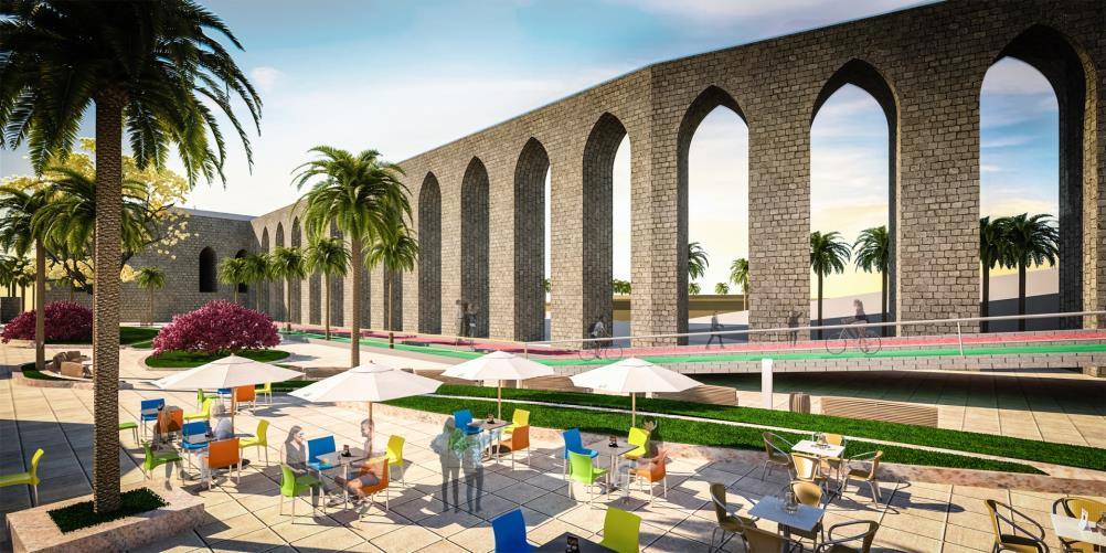 The cafes and tourists walkway in front of the aquaduct software: 3ds max - vray - photoshop