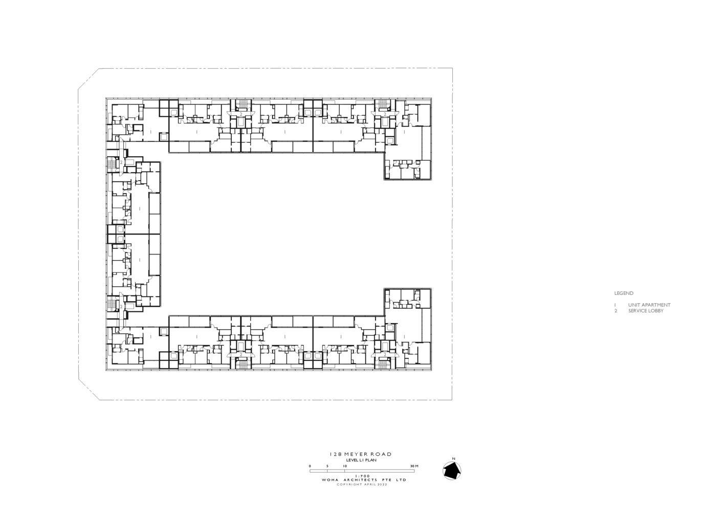 Material : Beton bertulang serat kaca (GFRC).Ada empat tipe unit di Meyer House, yaitu tipe A, B, C, dan penthouse. Di samping kemewahan dan fasilitas yang disediakan di Meyer House ini, satu hal yang dapat