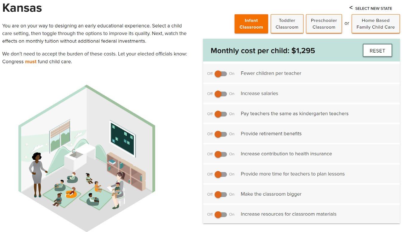CostofChildCare.org Interactive cost Estimate tool (Developed by center for American Progress, 2018)