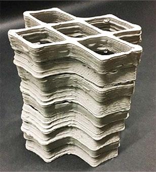 I have conducted this experimental design research in collaboration with Dr. Paola Sanguinetty at Robotic lab of the University of Kansas. This design research in 3D printing technologies for architecture, engineering, and construction focuses on the use of building materials that can be integrated into an additive manufacturing (AM) framework. This research will investigate the design, modeling, simulation of 3D-printing and production process of a self-supported/ stackable clay system by robotic fabrication. Most of the research in AM have been done on concrete, and less on Clay. Using Clay in this industry is important as an environmental-economic friendly material. Some of the previous research have been done on Robot Aided Fabrication with clay, however this research contribute to finding a new material mixture and tiling system which support a stable and flexible shape. Material and printing parameters are evaluated.