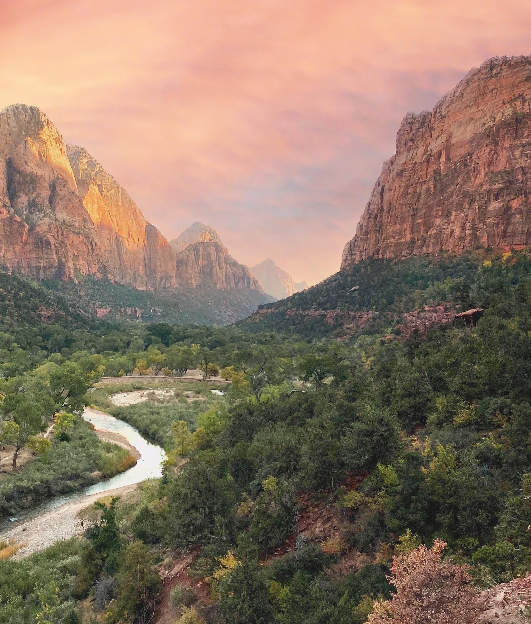 With too many hiking trails to list here, Zion National Park offers everything from easy kidfriendly adventures to thrilling climbs up steep cliff walls. Looking for a challenge? Apply for a permit to hike the famous Angel’s Landing Trail, perhaps the most famous in the park. Beware of this one if you have a fear of heights, as you’ll be hiking along a rim with steep drop-offs on both sides for a portion of the trail. Want something more relaxing? Try the Emerald Pools Trail, a short hike along a small stream with beautiful waterfalls and natural pools.