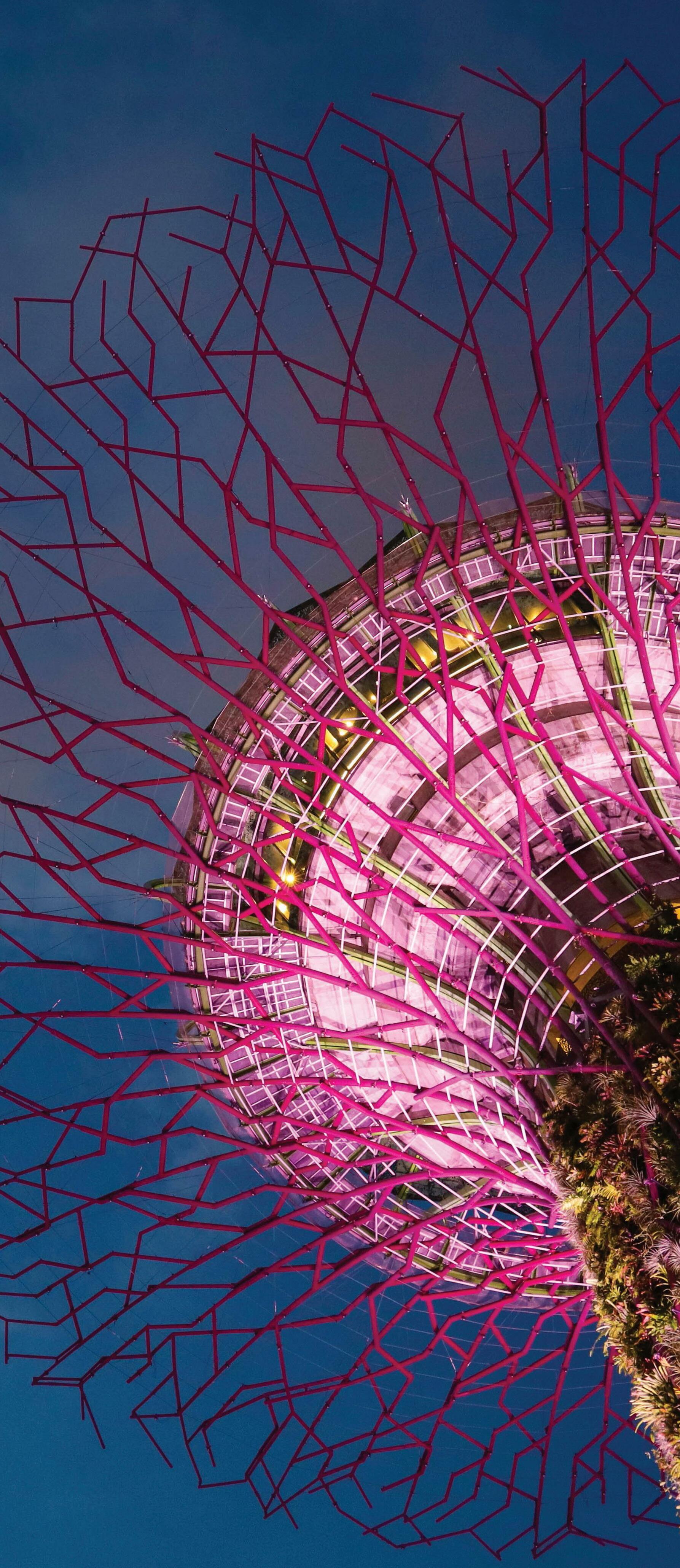 One of the most well-known attractions in Singapore is thought to be the Cloud Forest of Gardens by the Bay. This greenhouse-like conservatory, which is located next to the Flower Dome, has spiralling walkways and one of the world’s tallest indoor waterfalls that rains water down from a height of over 35 metres.