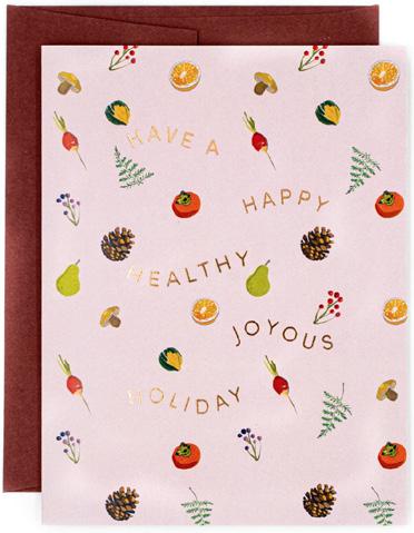 I think about food all the time. Going further than what I might eat for my next meal, I think about the seasonality of produce, the cultural context of food especially with my own upbringing, the foods that make you and me happy. Naturally, the subject of food weaved its way into my illustrations and designs. I want to invite all the recipients of these cards to think about what they’re eating, what is or isn’t familiar to them, and maybe have a conversation about it.