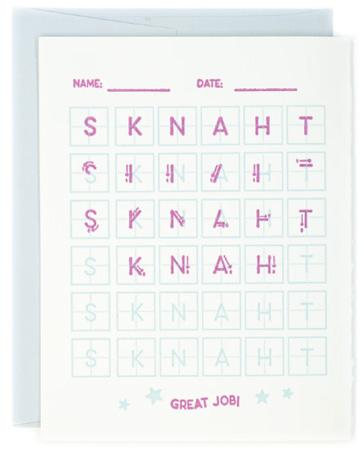 All greeting cards are letterpress or foil printed unless indicated otherwise on 100% cotton paper or similar cardstock. Each card is A2 sized (4.25” x 5.5” enclosed, 4.375” x 5.75” envelope) with a blank interior, wrapped in a compostable, clear wrap. If you prefer the cards to exclude the clear wrap to be more eco-friendly, please indicate this in your email. Note that as each card is letterpress printed by hand, slight variability may occur in inking, color, and positioning. Each card comes with a matching envelope. An alternate colored envelope will be substituted if the standard is not available.