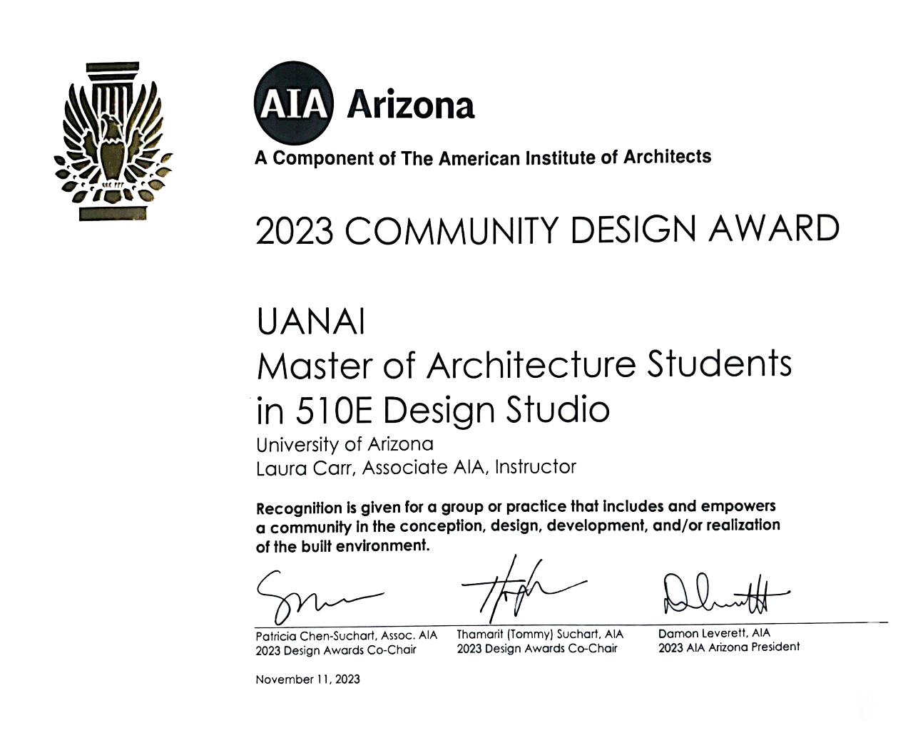 AIA Arizona Award | 2023 Community Design Award | Fall 2023 Scholarships