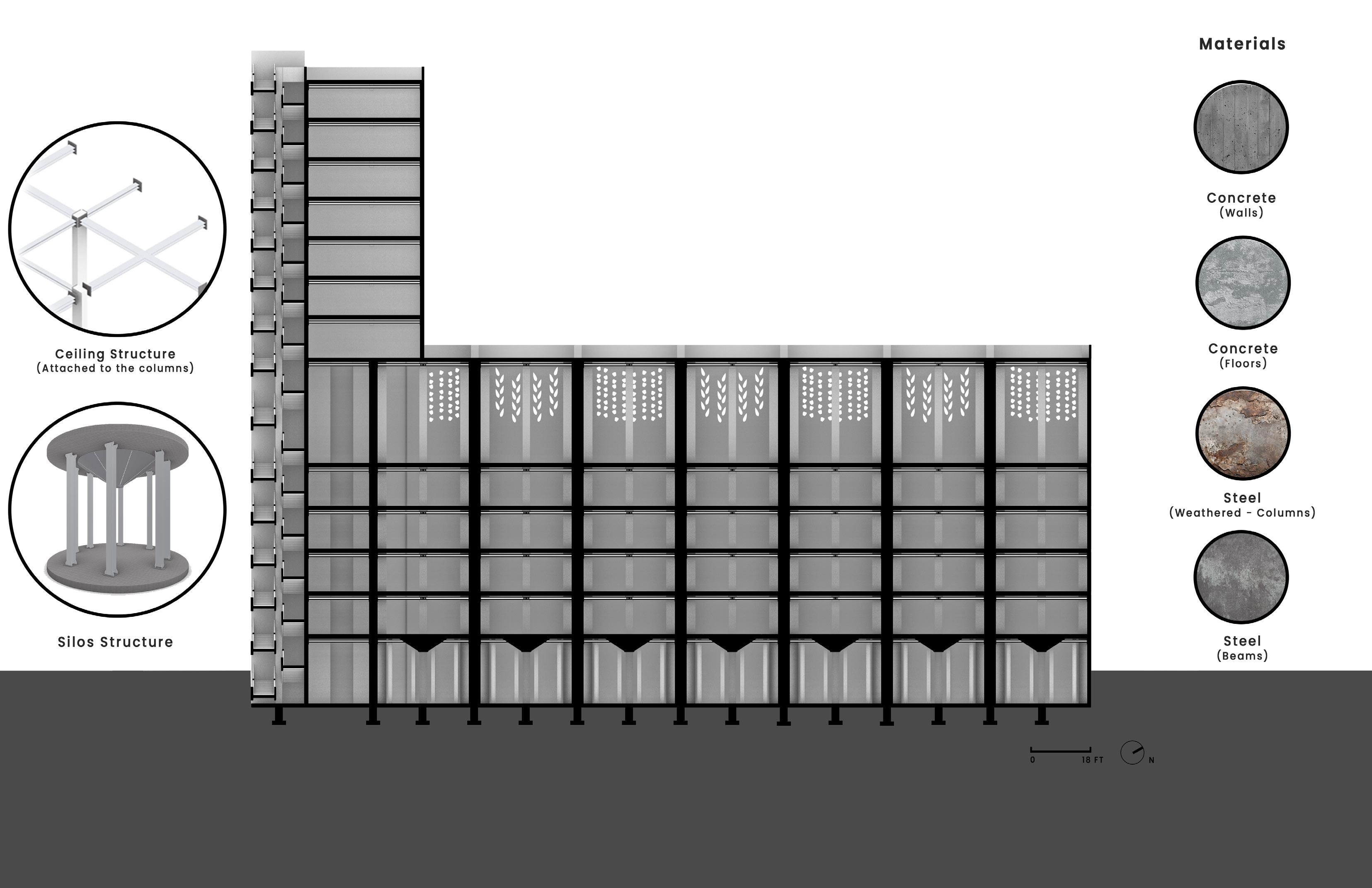 The Damen Silos project envisions transforming the silos into an arts center, fostering community engagement and creative reuse. The design aims to repurpose the silos into a vibrant hub for artistic creation and cultural exchange, offering a unique space where artists and visitors can collaborate, create, and appreciate art. Situated along the South Branch of the Chicago River, the site connects to diverse neighborhoods like Pilsen, Bridgeport, and Chinatown, enhancing its potential as a dynamic community space.