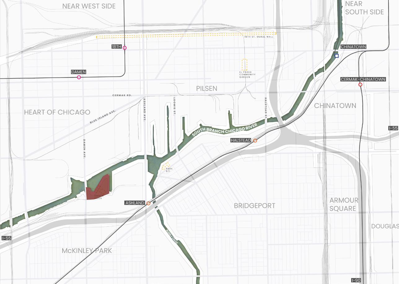 The 2024 Critical Practice Laboratory at CAPLA, in collaboration with community leaders and civic stakeholders, presents a Masterplan for Urban Renewal and Riverfront Restoration along the South Branch of the Chicago River. This proposal aims to revitalize the area by integrating community-driven insights with sustainable design strategies.