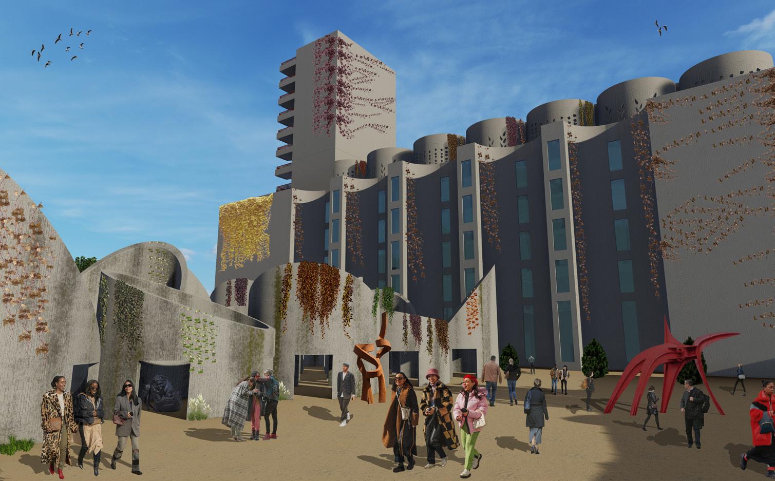The masterplan for the South Branch (Pilsen) is guided by the concepts of Expression, Connectivity, and Cultivation, focusing on Reimagine, Revitalize, and Respect. The project aims to transform the site into a space that celebrates art, history, and industrial heritage while connecting the silos to the broader community. By fostering ties between past and present, the design seeks to cultivate a vibrant community hub that honors the area’s history, environment, and cultural roots.