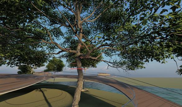 Our design for the Spring Pavilion in Vondelpark, Amsterdam, near the central lake, embodies the essence of spring by connecting people, nature, and architecture. The pavilion serves as a versatile space for cultural and recreational activities, seamlessly blending with the park’s natural environment. It enhances visual, tactile, and olfactory experiences while prioritizing sustainability and minimal energy use. With a maximum built area of 200 square meters, the structure respects the park’s ecosystem and wildlife. Elevated among the trees, it offers an immersive experience while preserving the habitat of birds and squirrels.