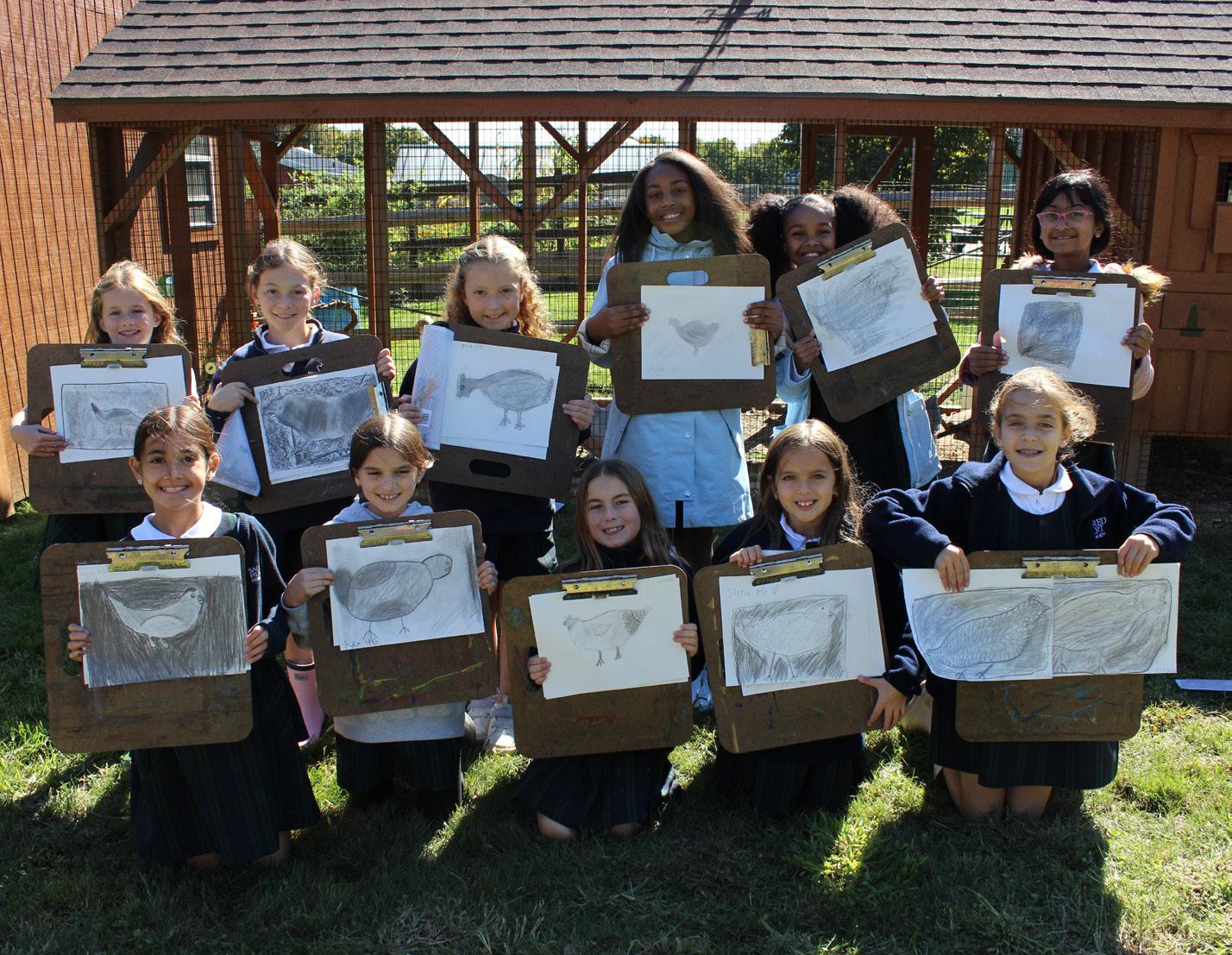 Recently, our fourth-grade artists spent some time down at the garden classroom with our very own Sacred Heart Greenwich chickens!