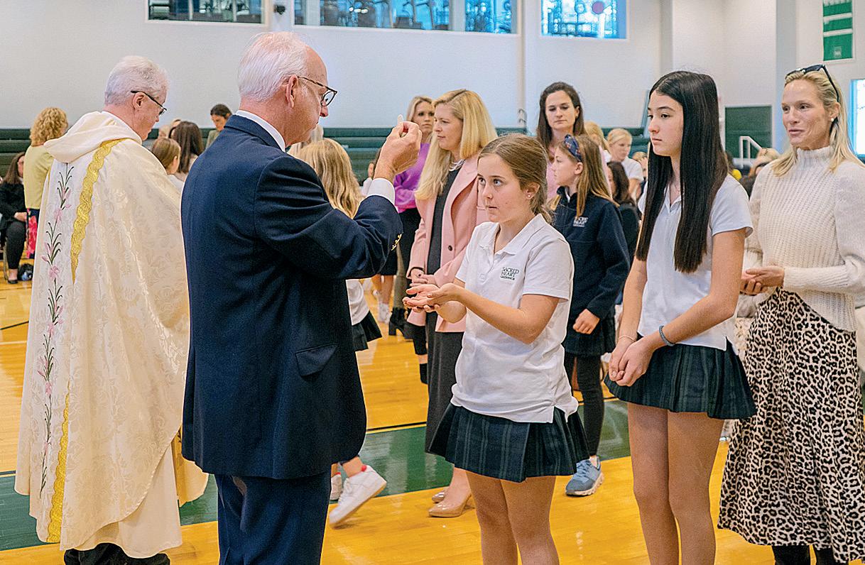 On September 8 at the Mass of the Holy Spirit, Bishop Caggiano installed 24 members of the Class of ’23 as Extraordinary Ministers of Holy Communion. This important ministry allows these students to distribute Communion at liturgies that take place throughout the school year, allowing them to serve as visible examples of Goal I to our entire Sacred Heart Greenwich community.