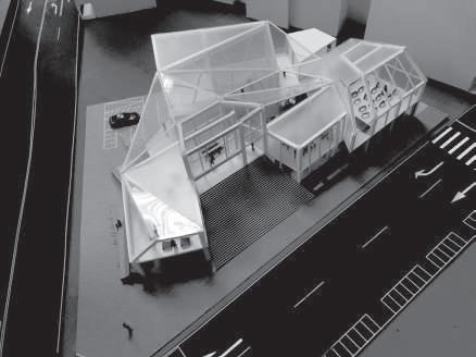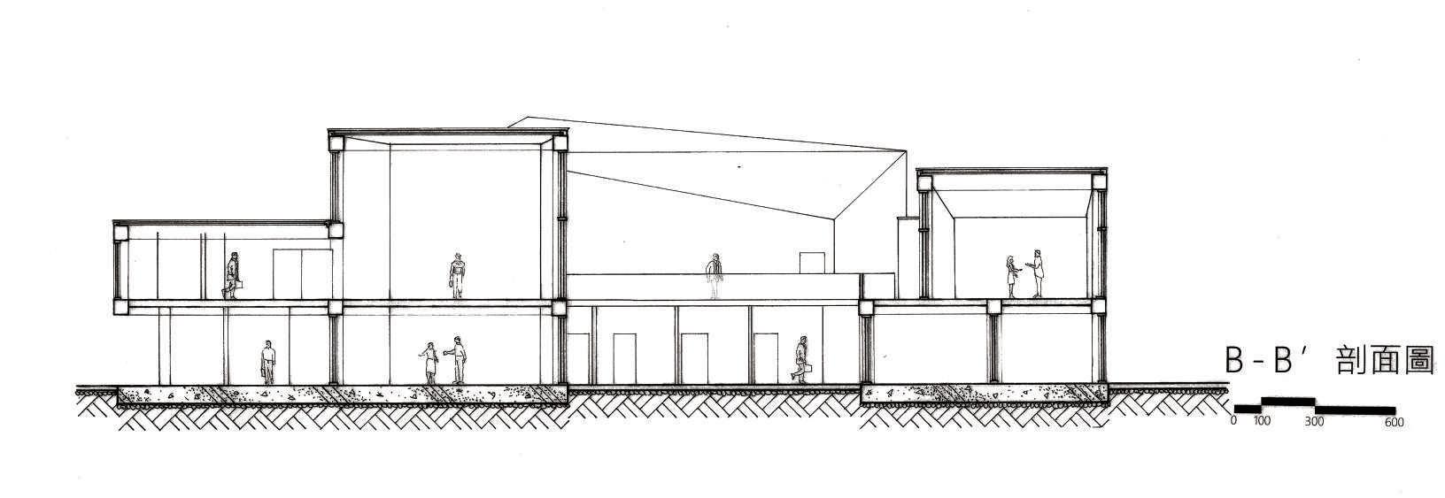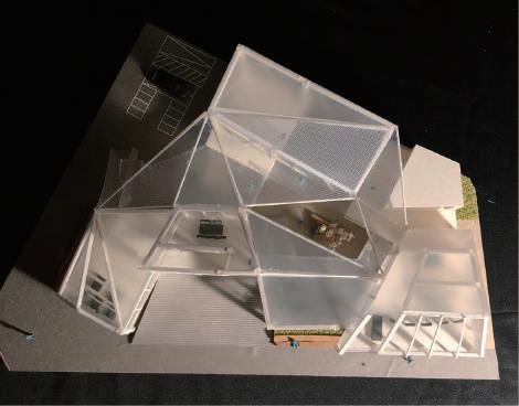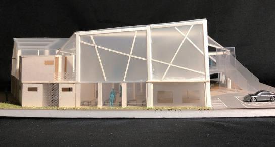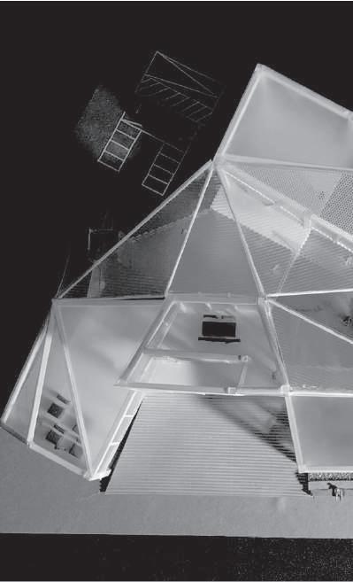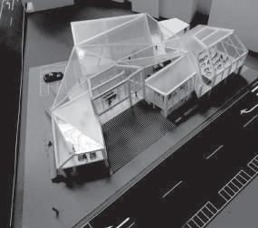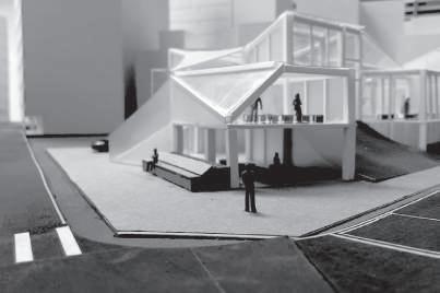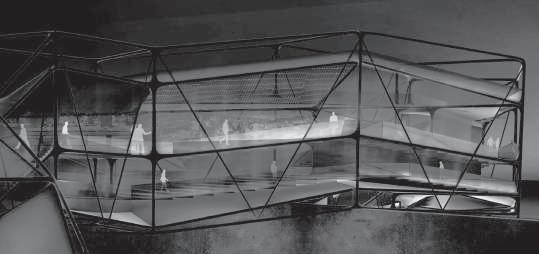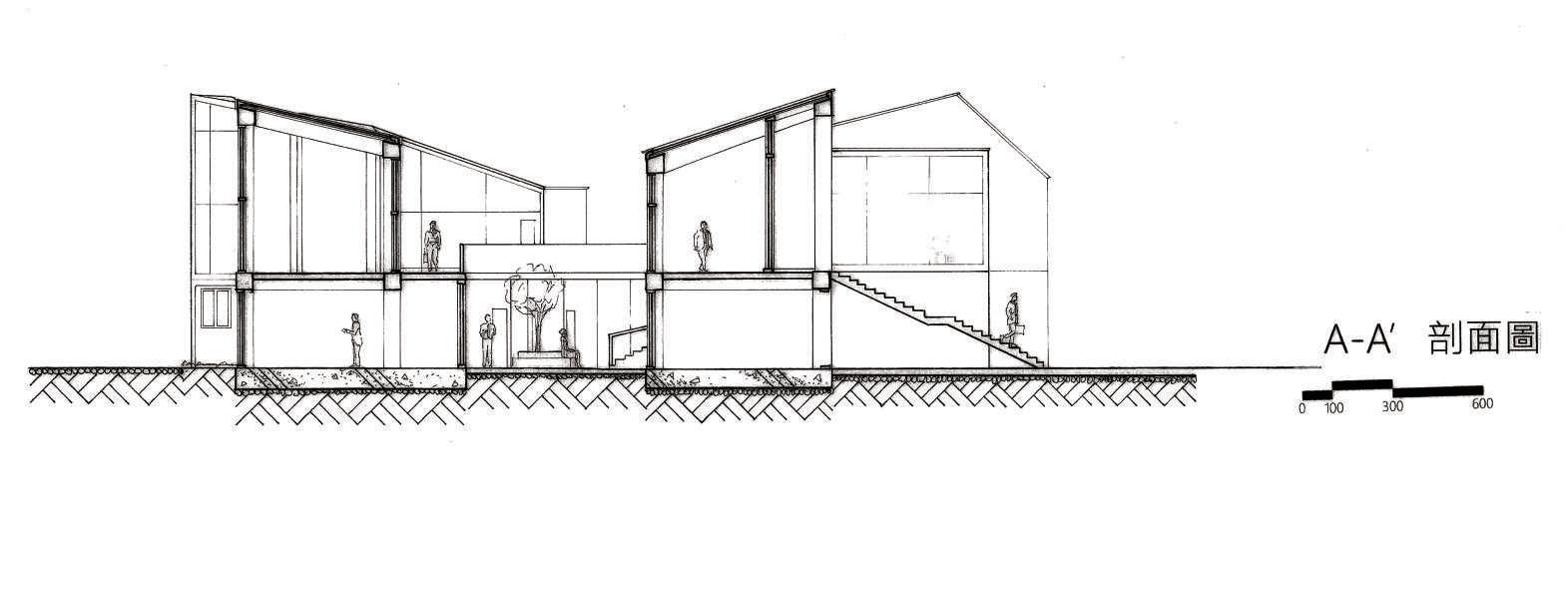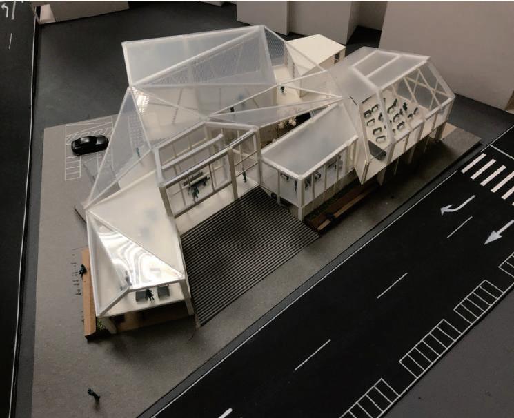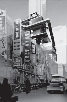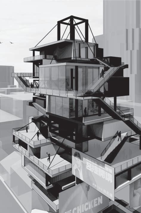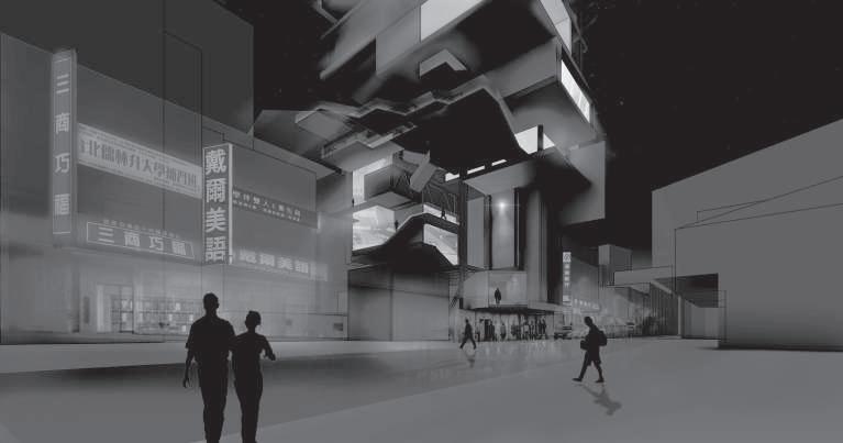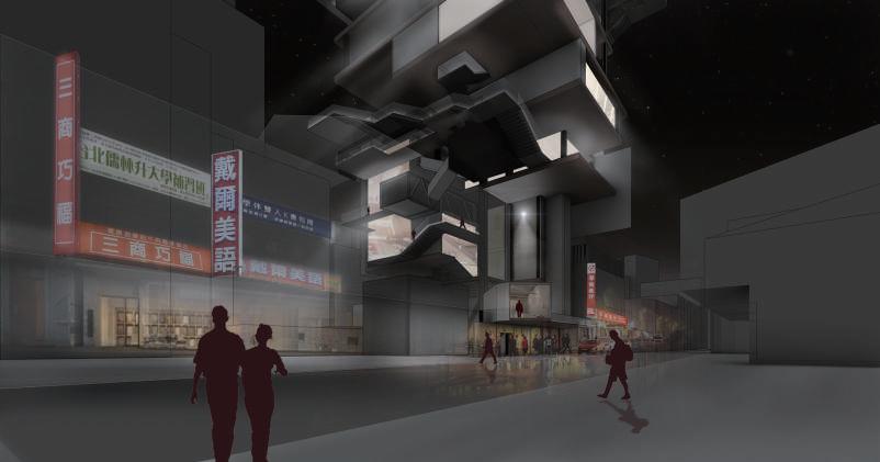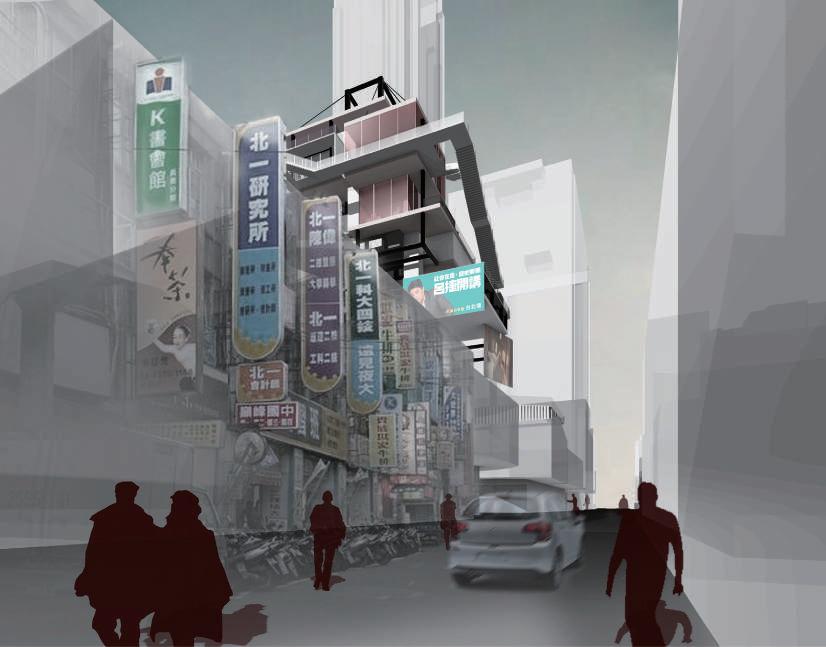 建築空間前後關係,讓外部的人看到建築內 人的活動與行為,像是穿透後看到的影像呈現。