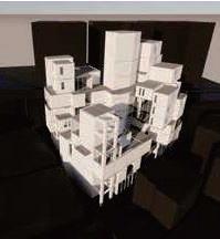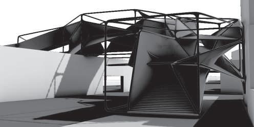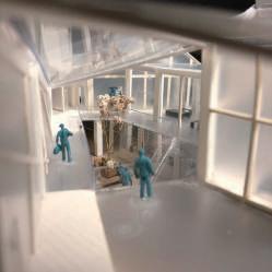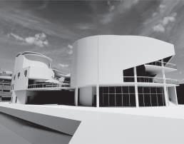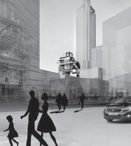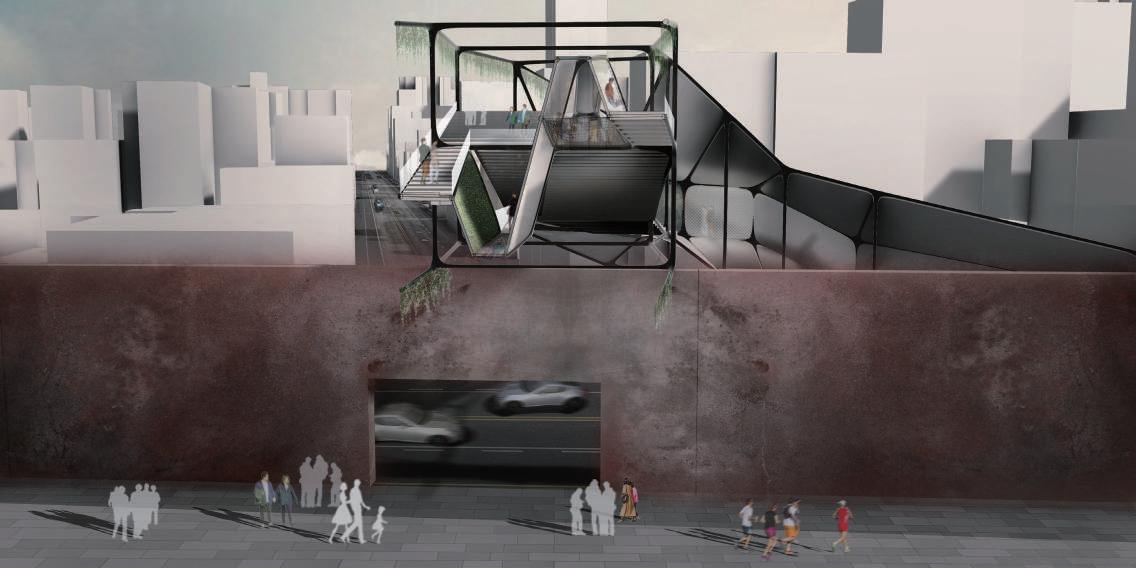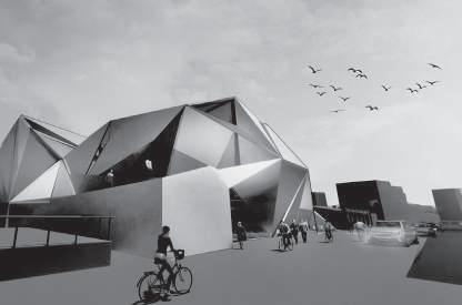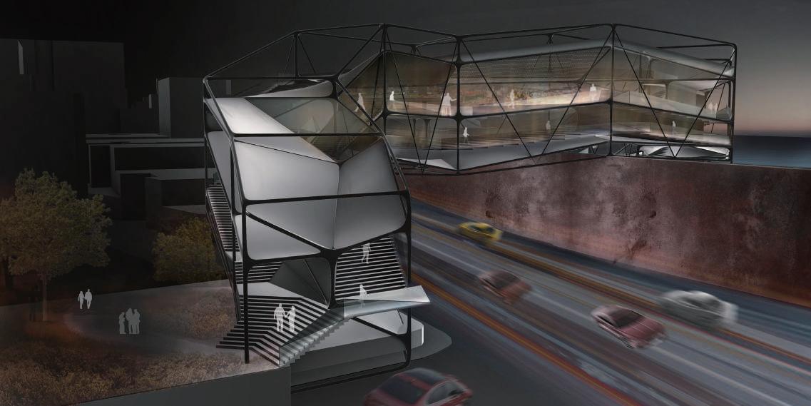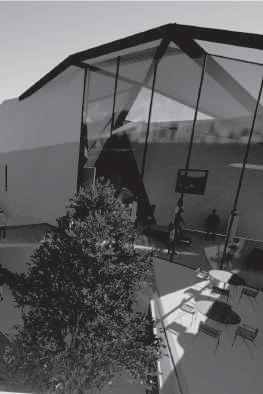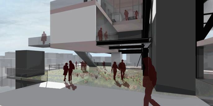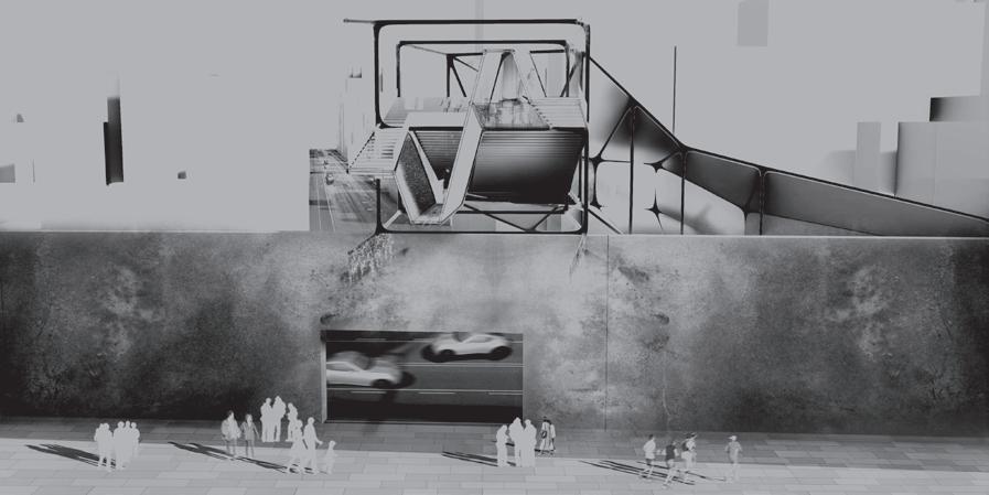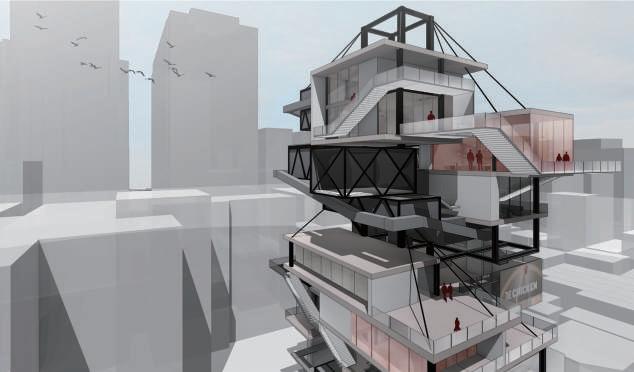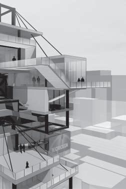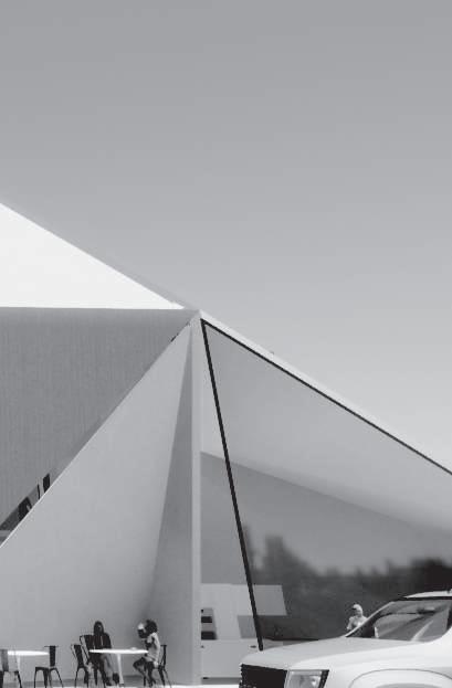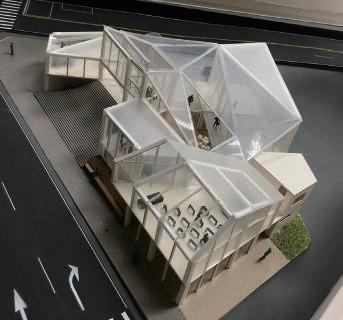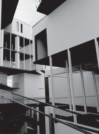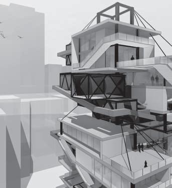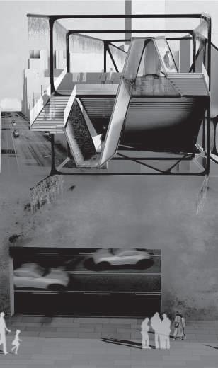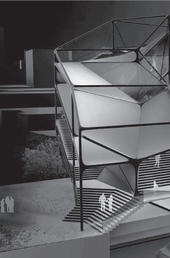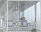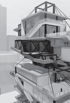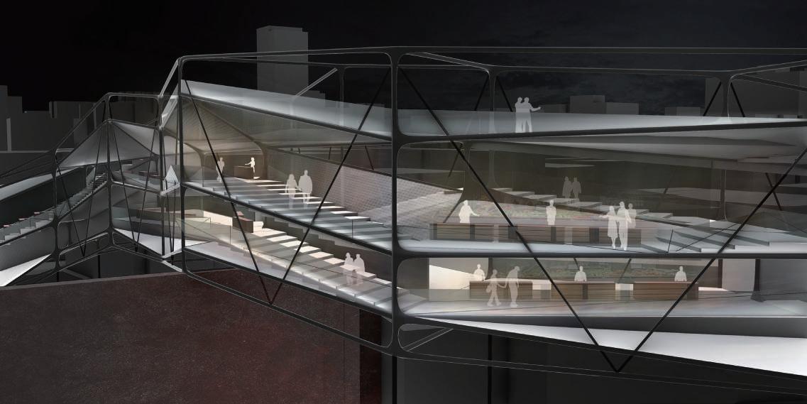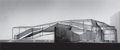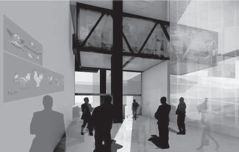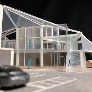 建築空間前後關係,讓外部的人看到建築內 人的活動與行為,像是穿透後看到的影像呈現。