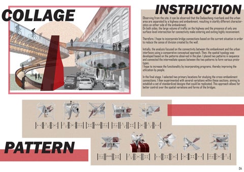 Initially, the analysis focused on the connectivity between the embankment and the urban interfaces using a comparative conceptual approach. Then, the spatial typology was developed based on the patterns observed in the plan. I placed two patterns in sequence and connected the intermediate spaces between the two patterns to form various prototypes.