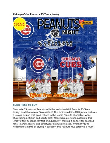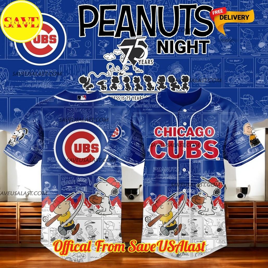 Celebrate 75 years of Peanuts with the exclusive MLB Peanuts 75 Years Jersey, available now at Saveusalast! This limited-edition MLB jersey features a unique design that pays tribute to the iconic Peanuts characters while showcasing a stylish and sporty look. Made from premium materials, this jersey offers superior comfort and durability, making it perfect for baseball fans, Peanuts lovers, and streetwear enthusiasts alike. Whether you're heading to a game or styling it casually, this Peanuts MLB jersey is a must-