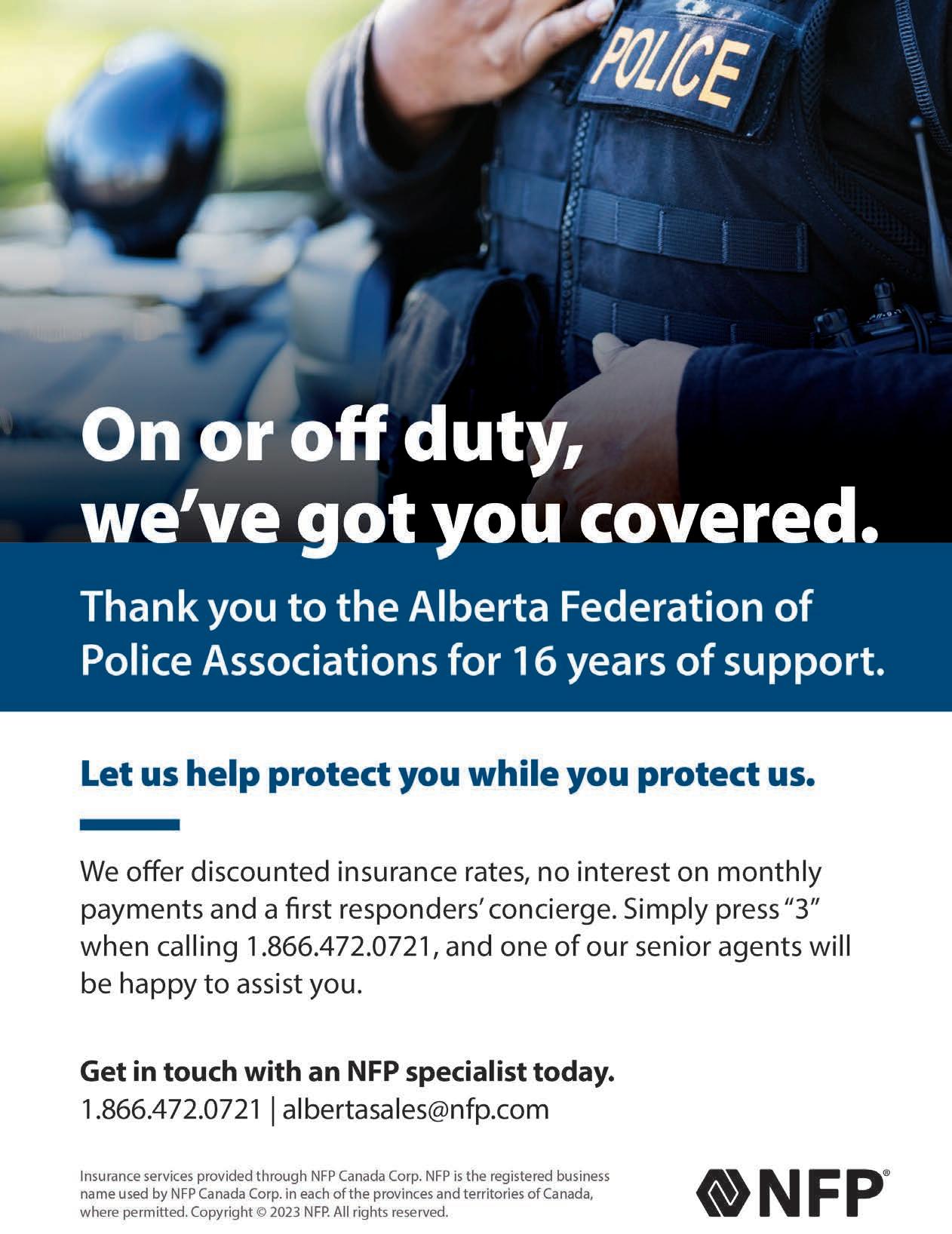 reetings AFPA members. I hope this article finds you well and truly rested after a summer of sun, sand, and copious amounts of your favourite beverage. It has been a relatively uneventful summer in the union world, and if I’m perfectly honest, I think we can all appreciate a bit of a lull. In my 8+ years as a Director with the Calgary Police Association, I have seen the rise and fall of tensions within the CPS many times. Sometimes these moods shift due to a change in personnel, and sometimes it’s a change in circumstances, but there’s no denying the relief it brings and the boost to morale that comes with it. Thank you all for your continued support and words of encouragement as we fight to make sure your voice is heard with the Executive, respective Police Commissions, City Halls and the Legislature.