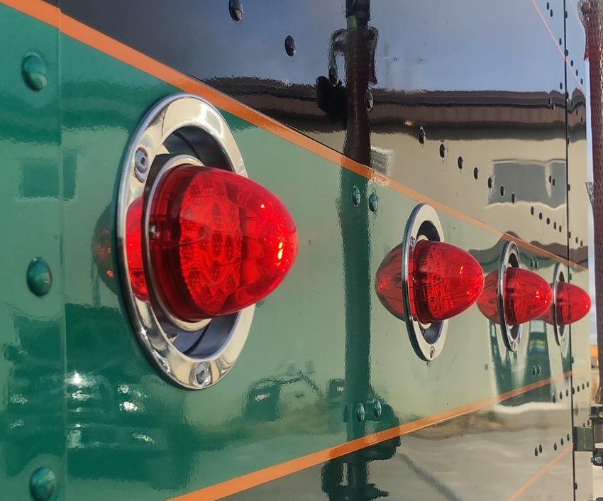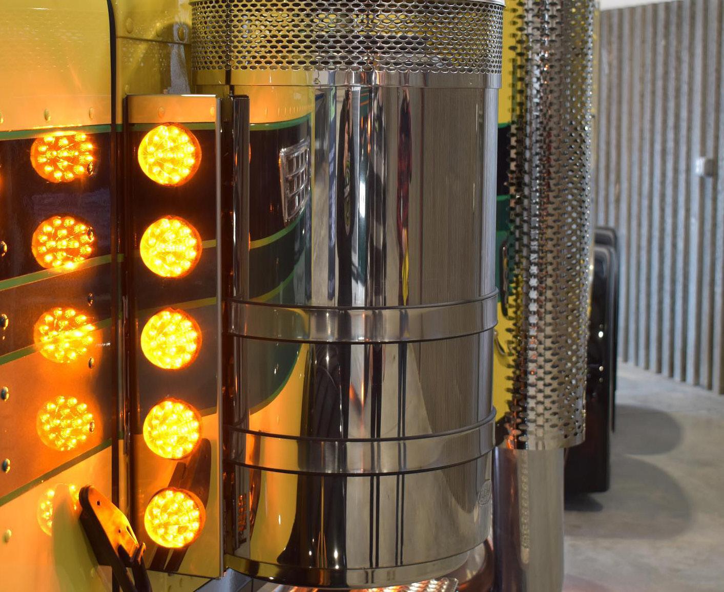 Our alternative version of our original Watermelon Air Cleaner Bar for Peterbilt. Designed to either have a single-face or double-face, these breather lights can fit on all 15" Donaldson cans. Made of 16 ga. stainless steel.