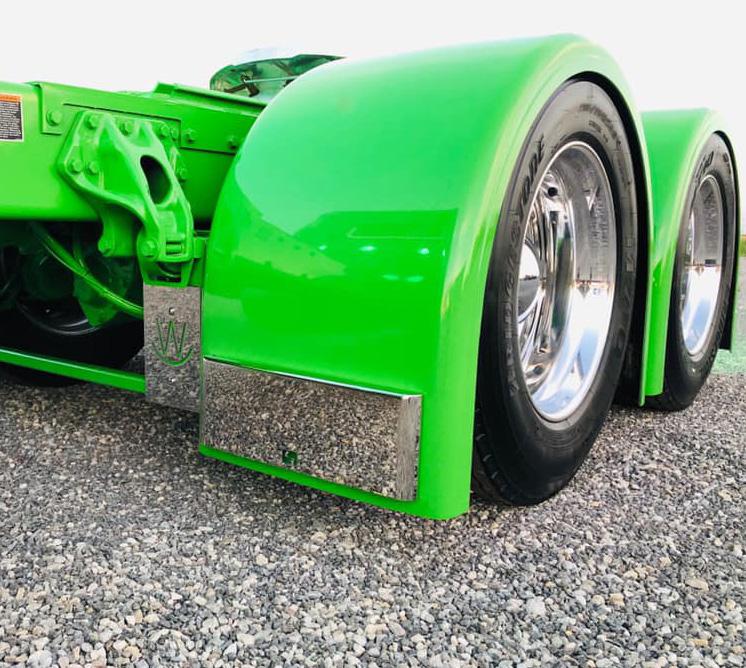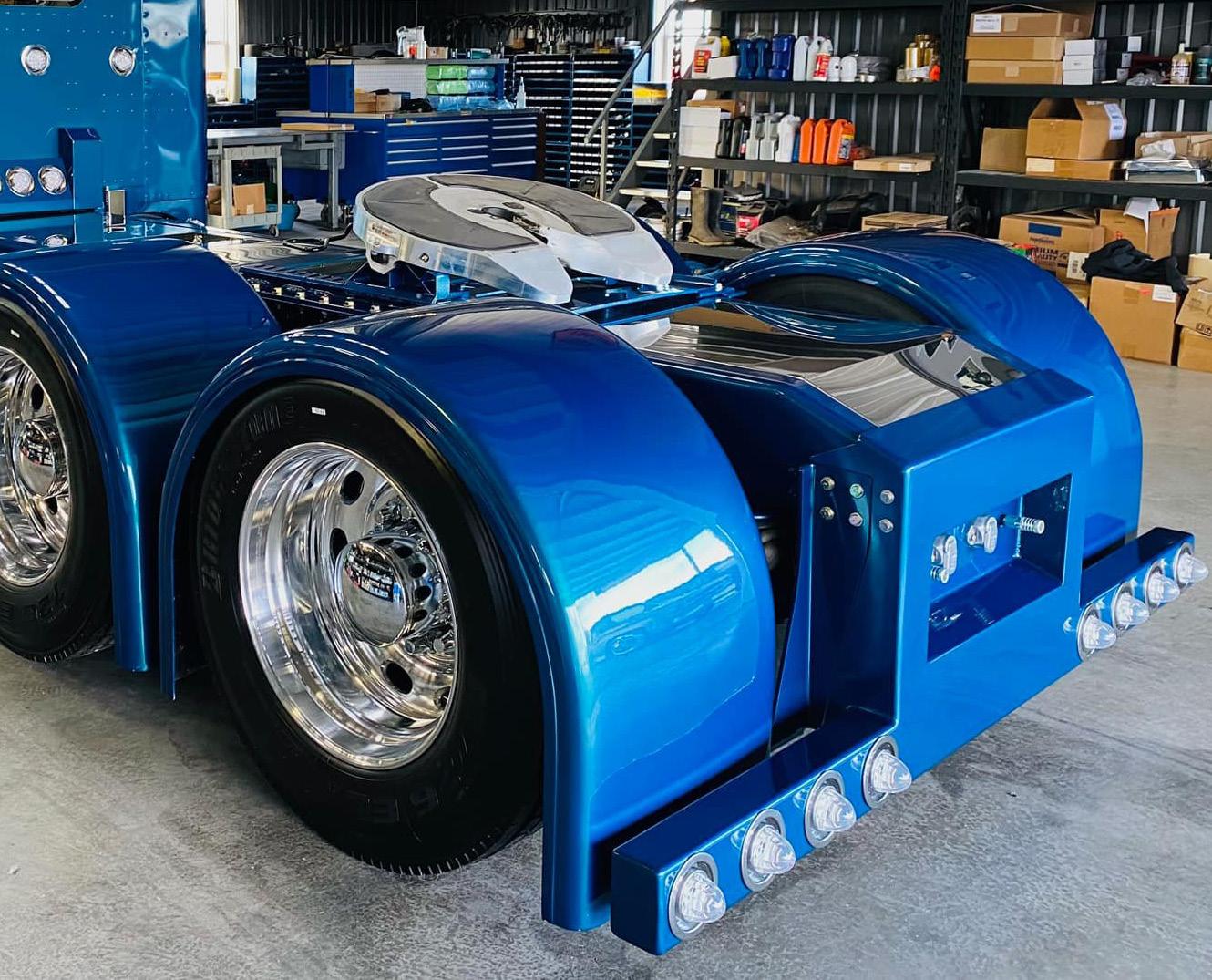 We upgraded our full-fenders from our past two-piece design to one full fiberglass unit. The full fenders fit both a 52" and 54" axle spread. Shift fenders are now 36.5” from the ground to the top of the center of the fender. This is one of the deepest dropped fenders on the market.
