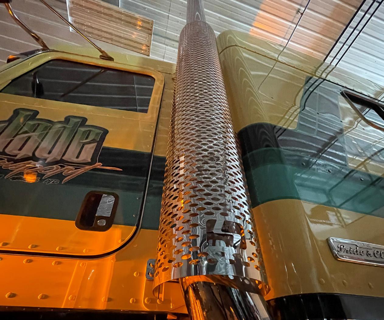 Our Rear Watermelon Air Cleaner Bars for Peterbilt is our latest breather accessory to properly mount up on the back side, just beneath the door hinge. Made of 16 ga. stainless steel.