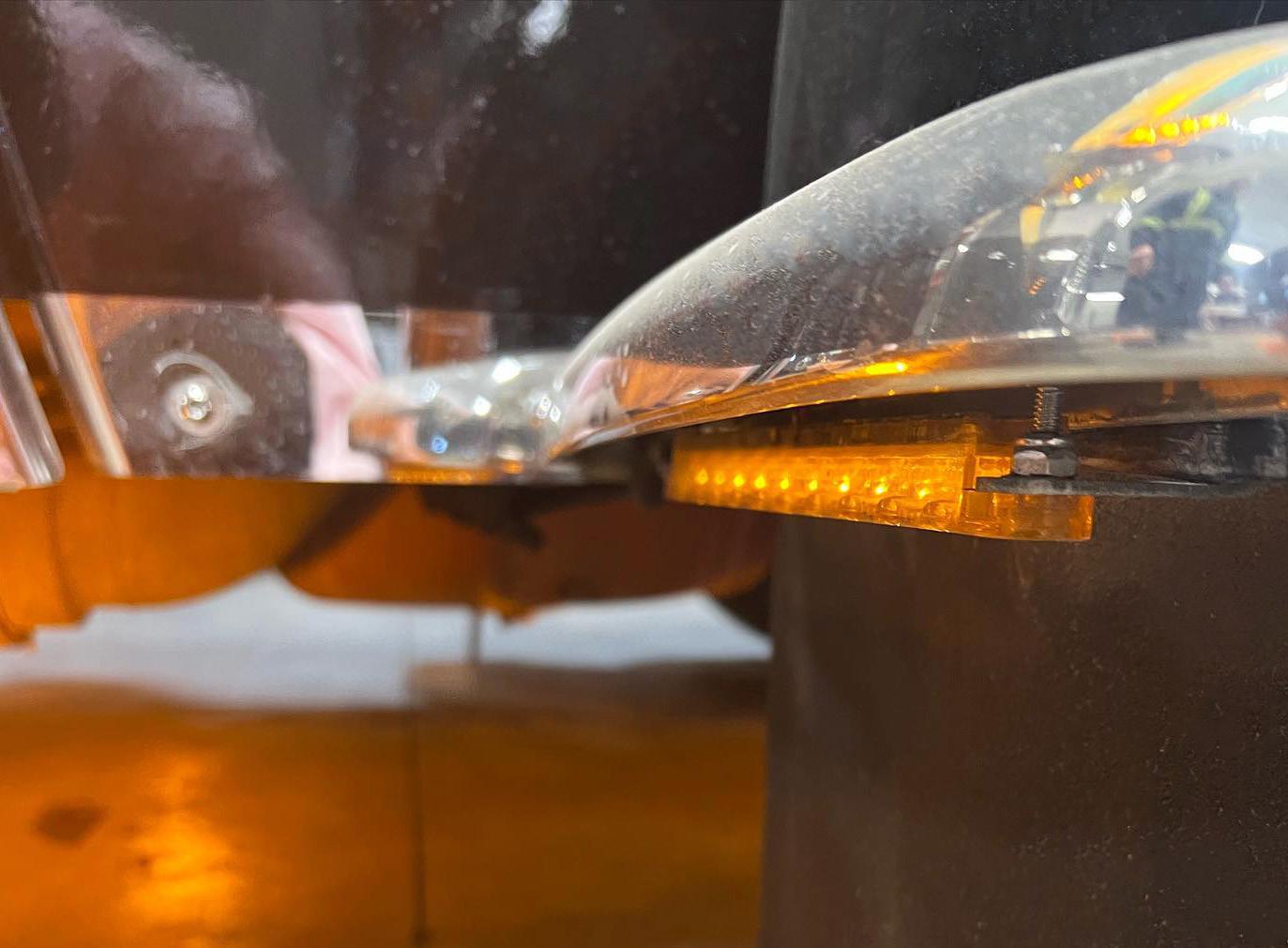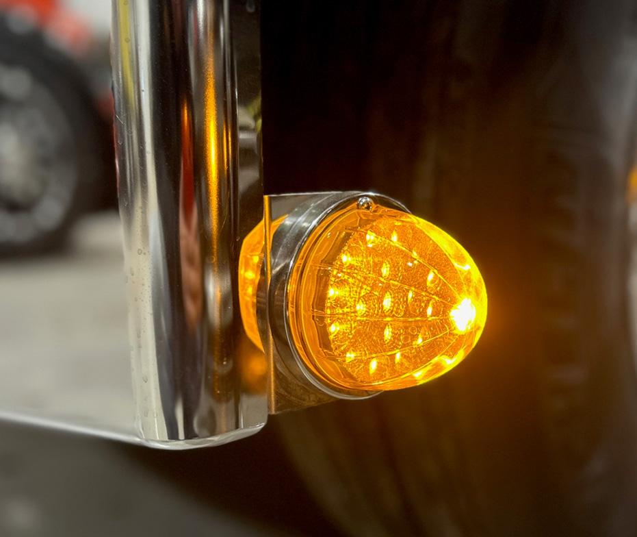 Our Fender Step Light Bracket is our most recent turn signal option for a Peterbilt front fender. Equipped with a three-wire 9" light bar, this light gives your truck added shine right above your front bumper and fender.