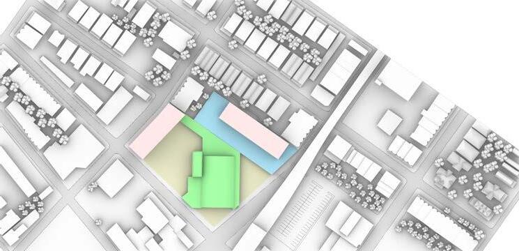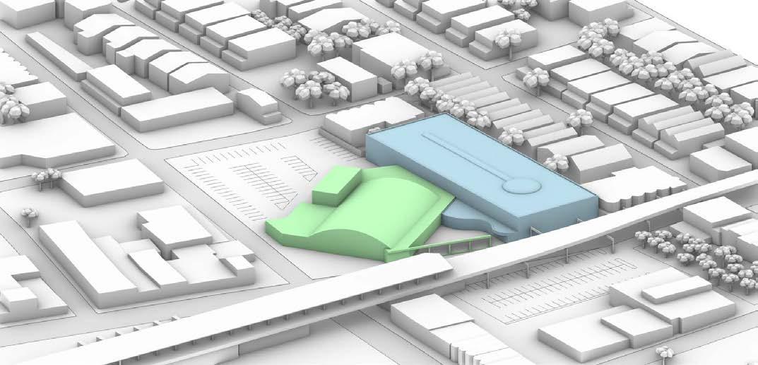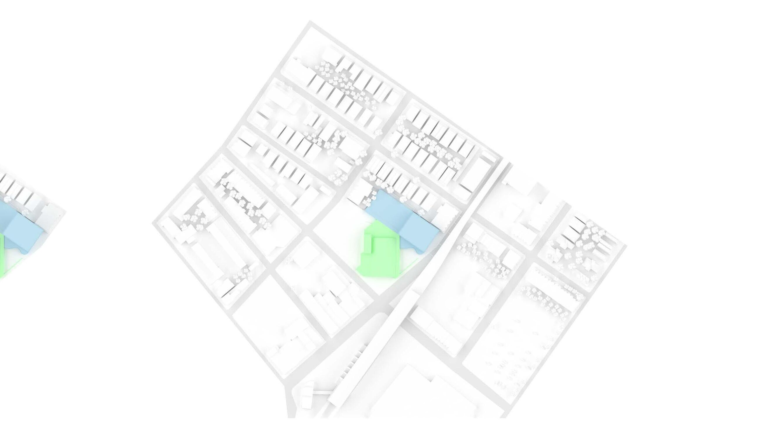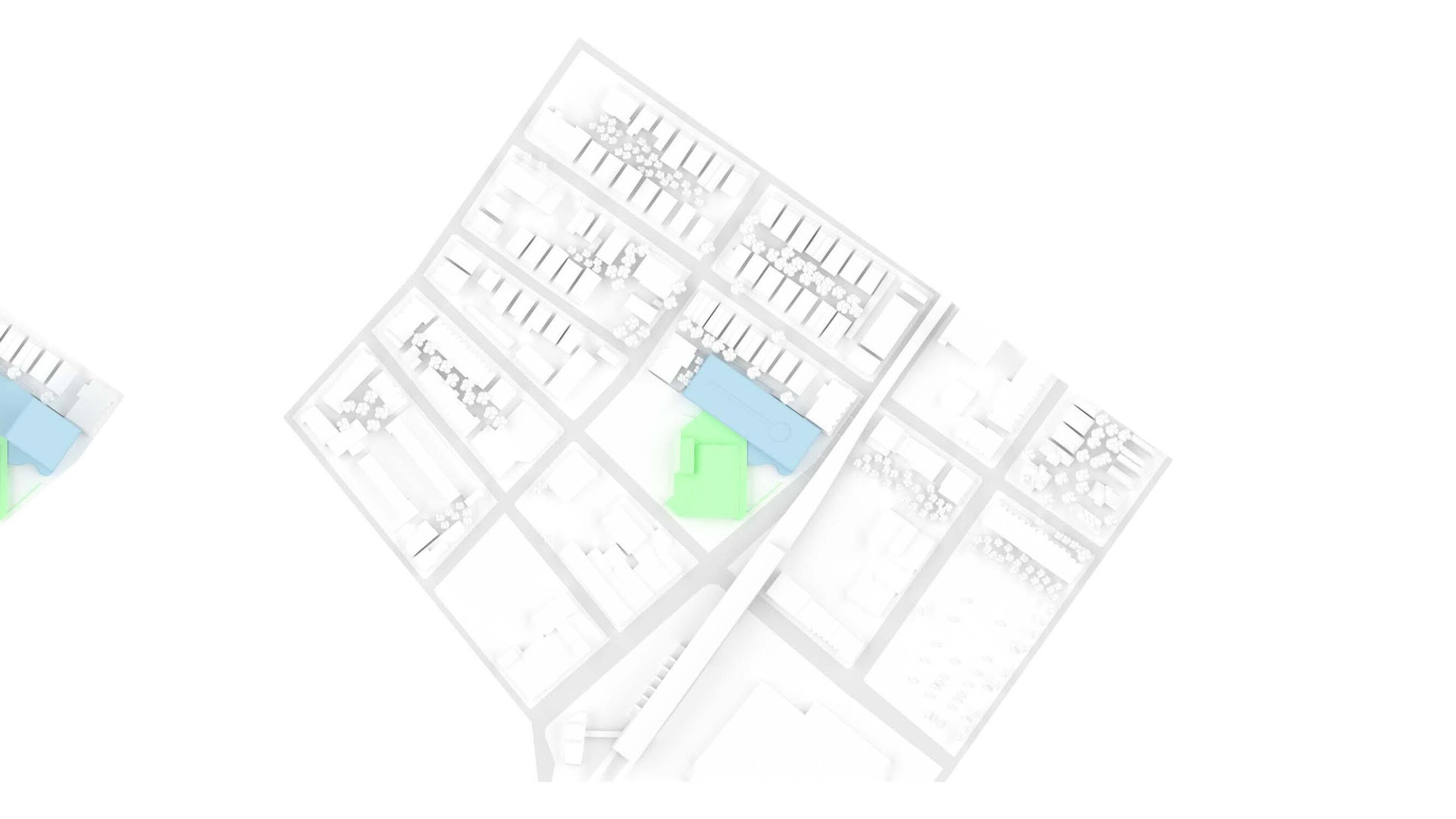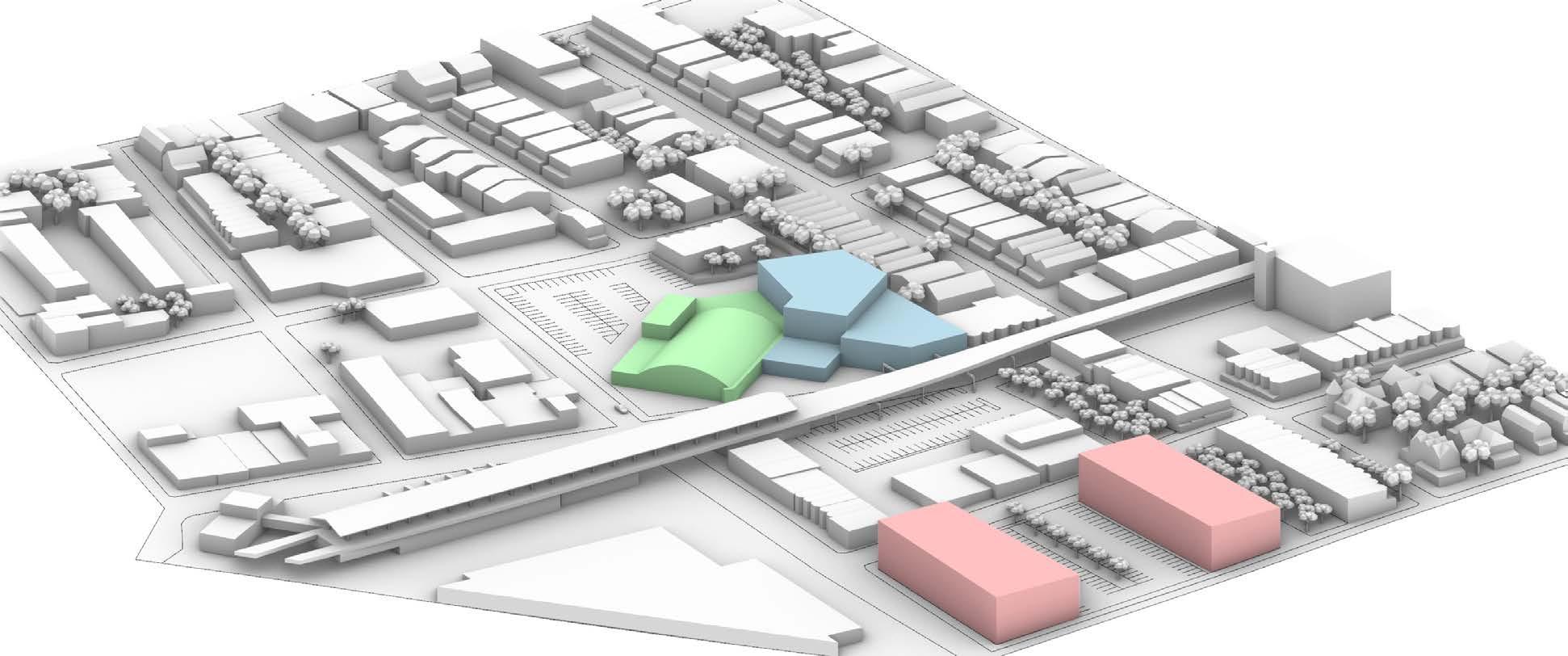 This project was a feasibility study and proposal to the city of Philadelphia for a mixed use site adjacent to the Frankford Transportation Center. The client for the project, the Frankford Community Development Corporation, tasked Bloomfield and Associates with creating a series of schemes showing the viability of a new municipal health center, a midsized grocery store, and an affordable housing development on the site of an existing vacant grocery store that had recently lost its historic status. Our team approached the site with the goal of not only meeting the minimum requirements, but also demonstrating that the problem could be solved while maintaining the historic grocery store and utilizing the adjacent transportation center; the second busiest in the city, to lower the required on-site parking. The proposal was ultimately successful and the city health department selected our site for the location of their new health center.