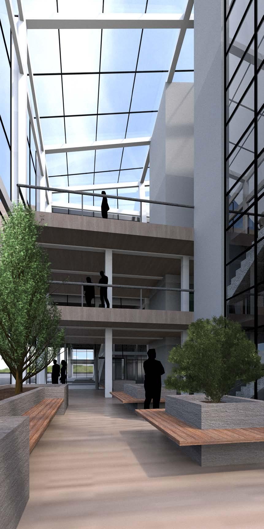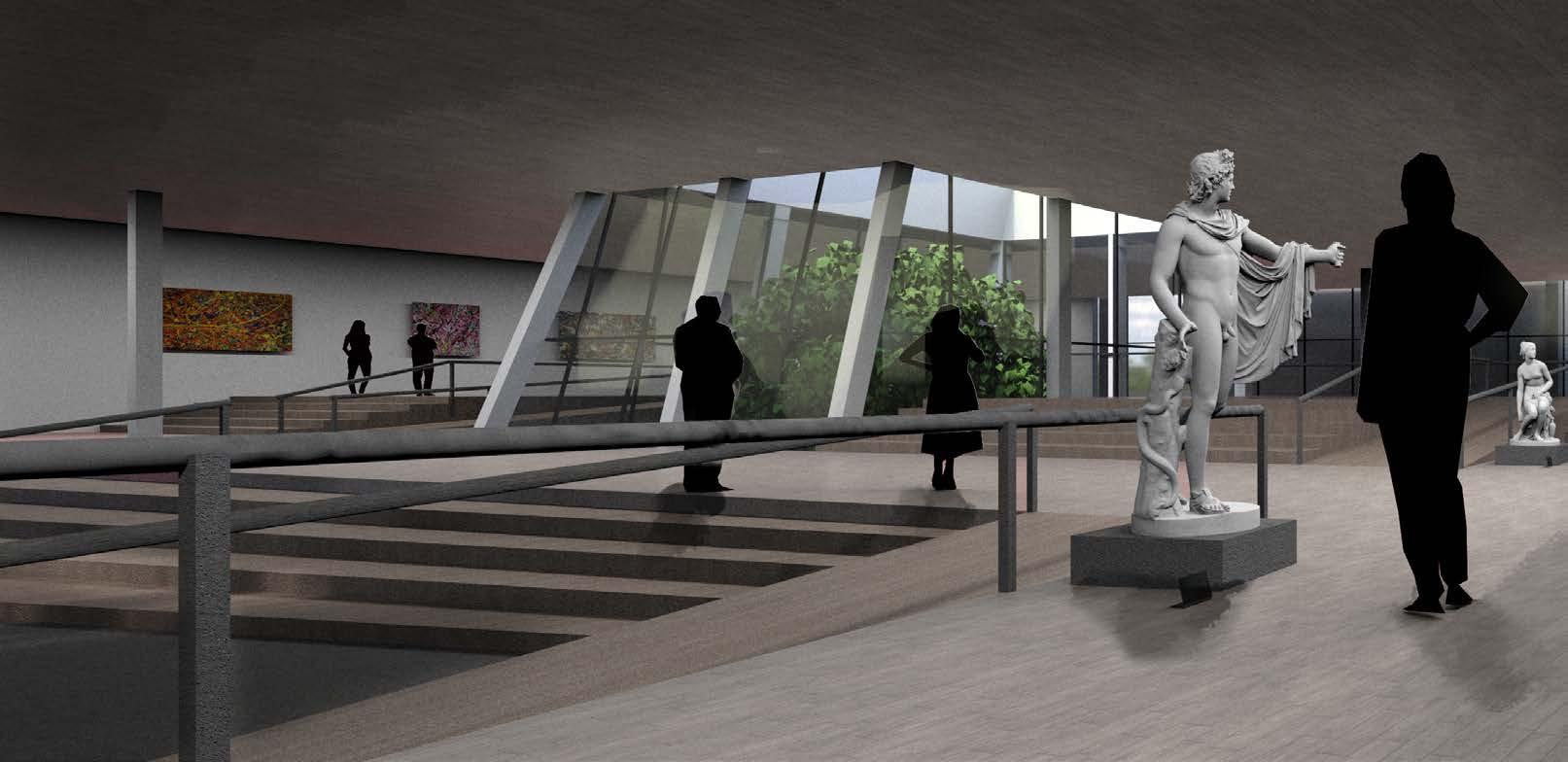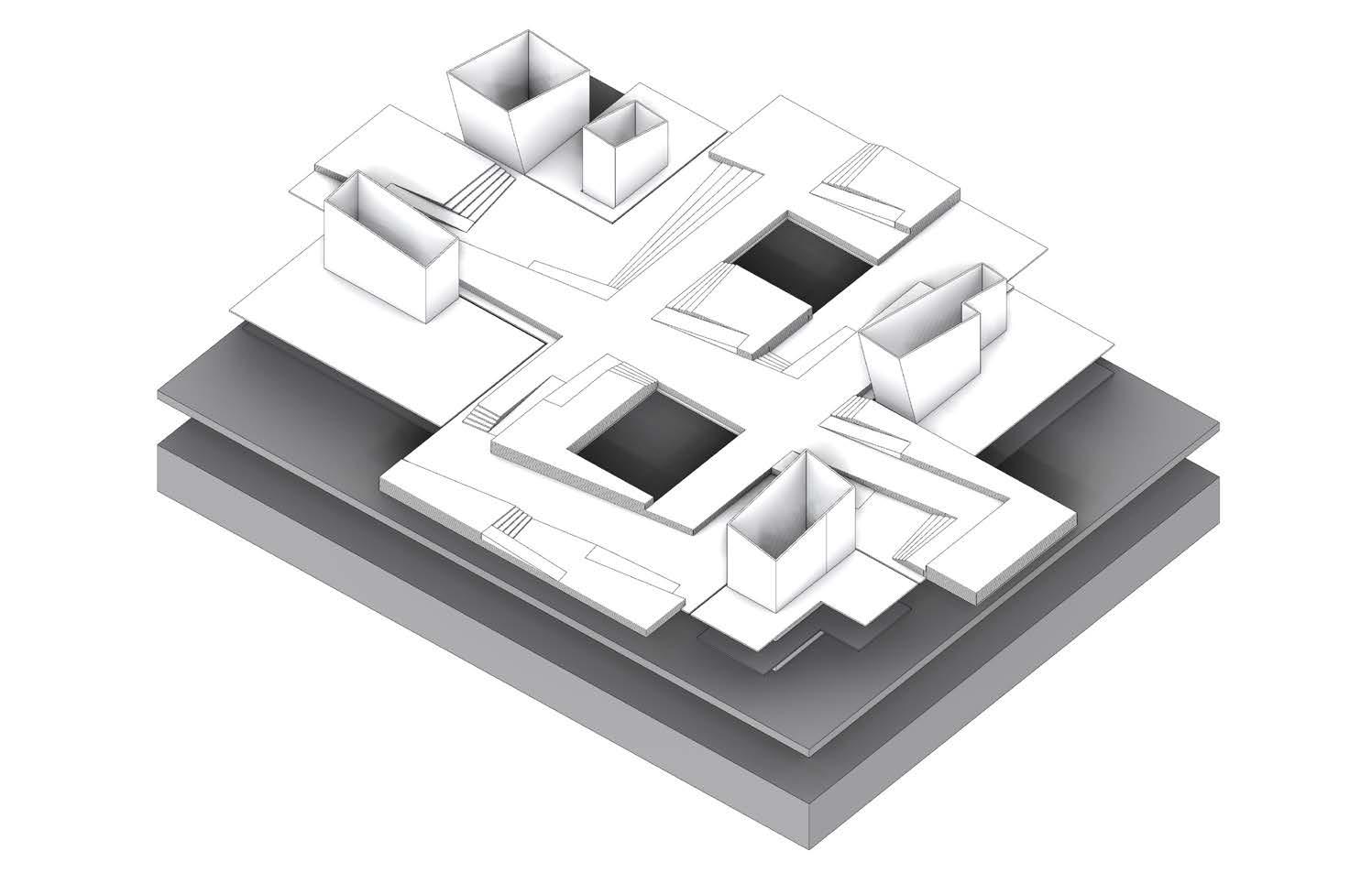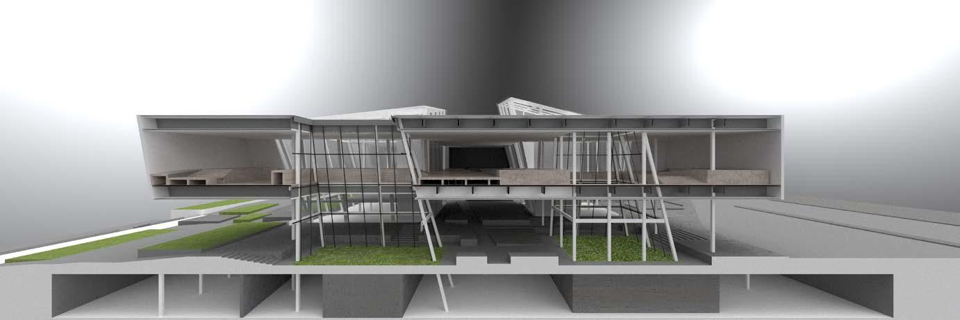 For this project, a team of three architecture students and one structural engineering student worked to develop a schematic design from a previous studio through the design development phase. The project that our team worked with was a riverfront art gallery located in South Troy. The primary focus of the project was on taking an architectural expression and resolving the structure, façade, detailing, and building code requirements. The project consists of four translucent vertical cores, which suspend the main gallery space 25’ above the site. The gallery itself is provided with natural light from the cores and two large courtyards which penetrate the space and provide vertical continuity with the site.