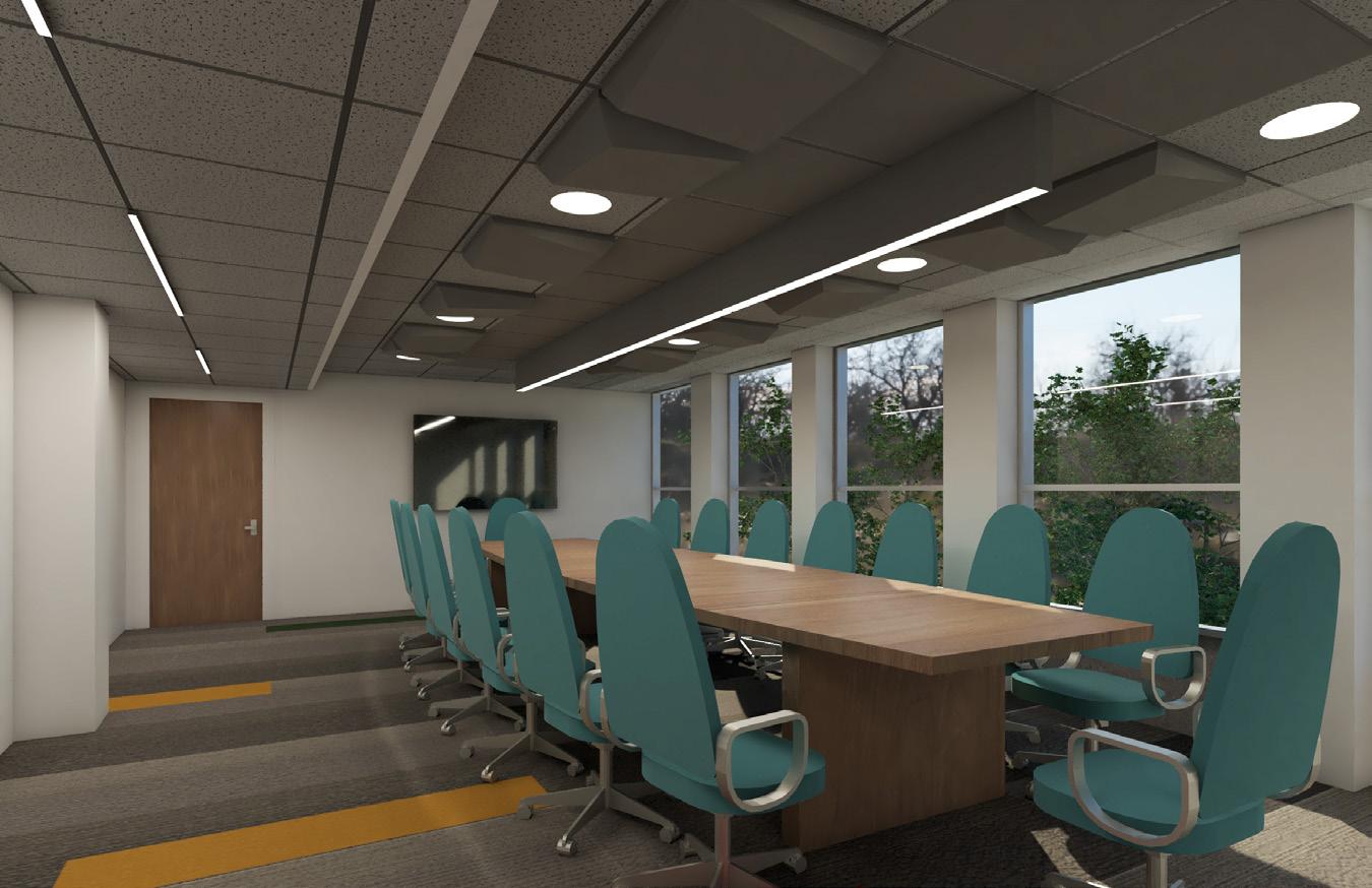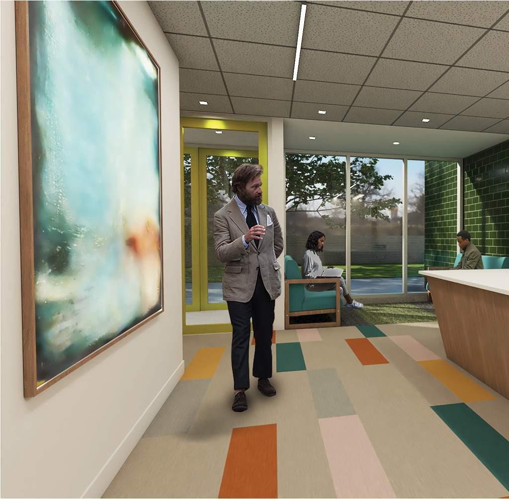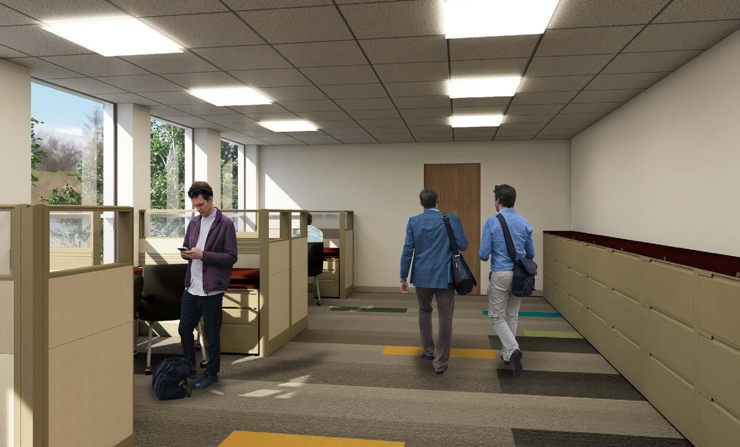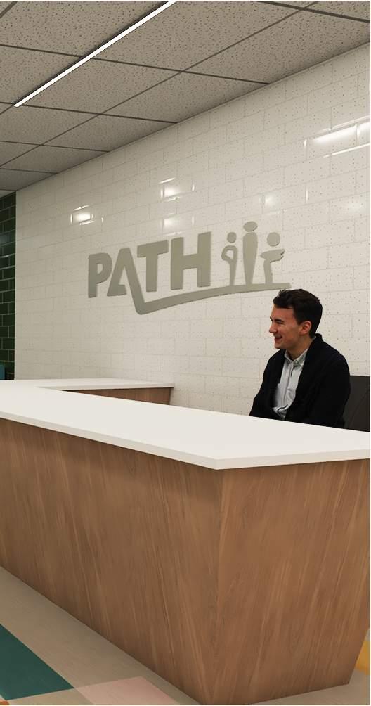 This project was a complete renovation of a 27,00 sf 1960’s office building with a 1,200 sf addition to the rear. The client for this project, PATH, is a mental health services provider in northeast Philly, and the program was a mix of adult day-care activity rooms on the 1st and 2nd floors, with office space on the 3rd and 4th. Because of it’s age, the building was not designed with significant mechanical equipment, and the 10’ floor-to-floor height posed a significant design challenge to fit the new mechanical system while maximizing ceiling height in the activity rooms and conference rooms. Additionally the building’s windows needed to be replaced, which provided a design opportunity to create a new system of alternating vision and colored spandrel glass which was used to generate a spacing module for the new interior partitions.