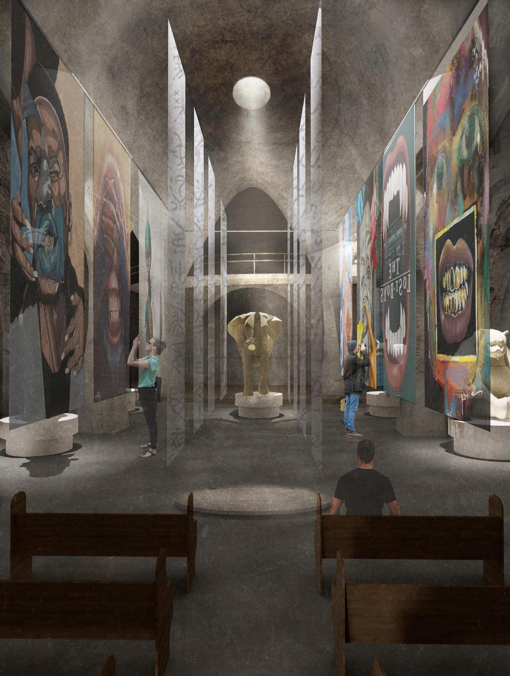 2The display window of the cross-arched doorway emphasizes the sense of order and unity of the sculpture exhibition space, which contrasts with the gallery space of artistic freedom.
